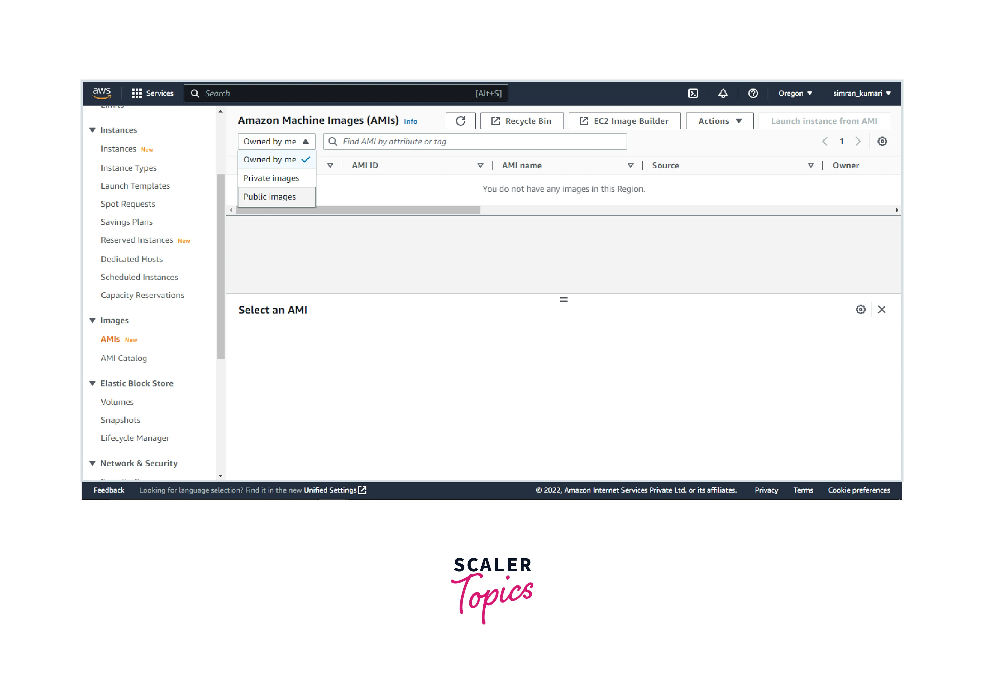 - Go to the AMI menu in the EC2 console and choose the Public images.