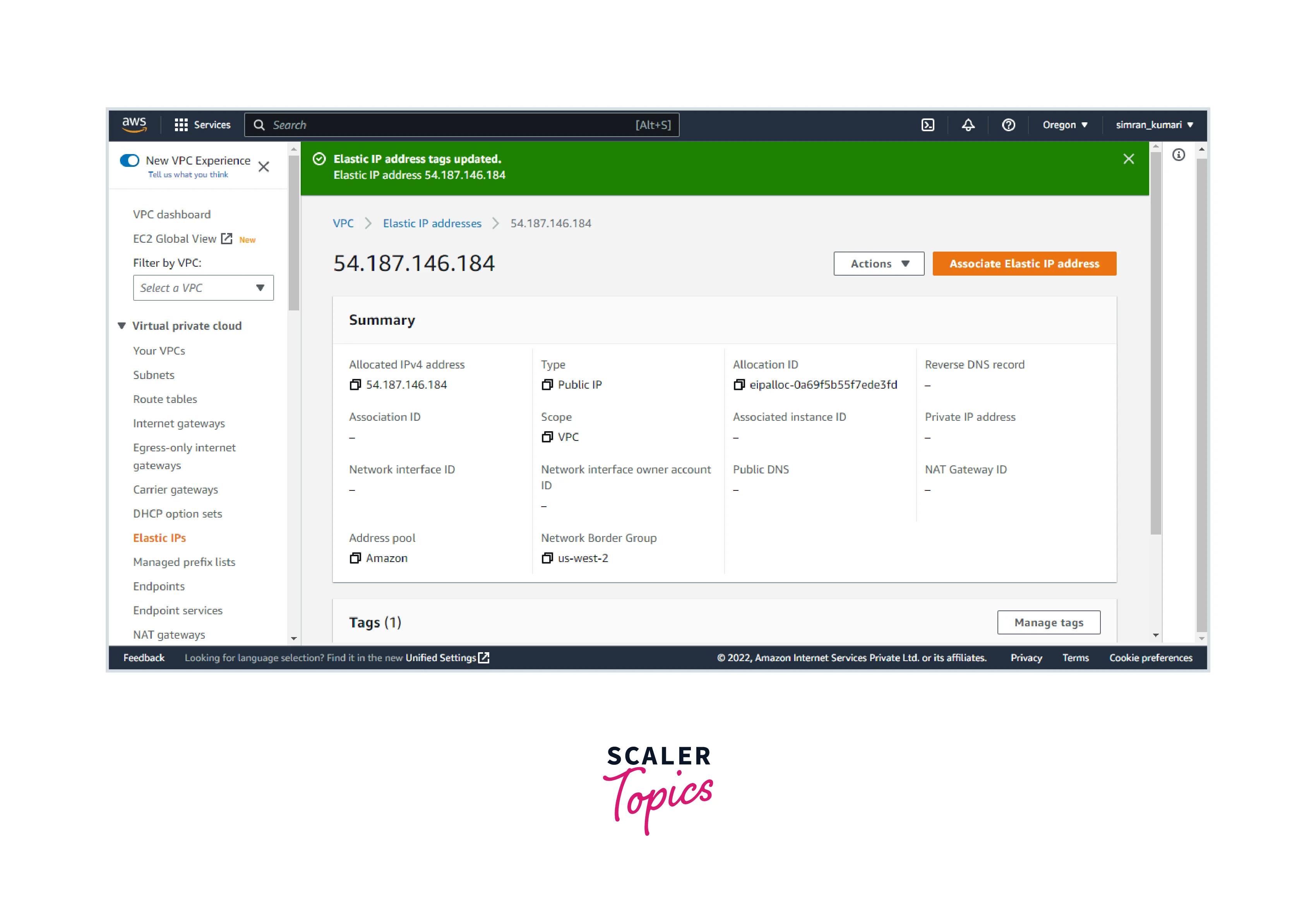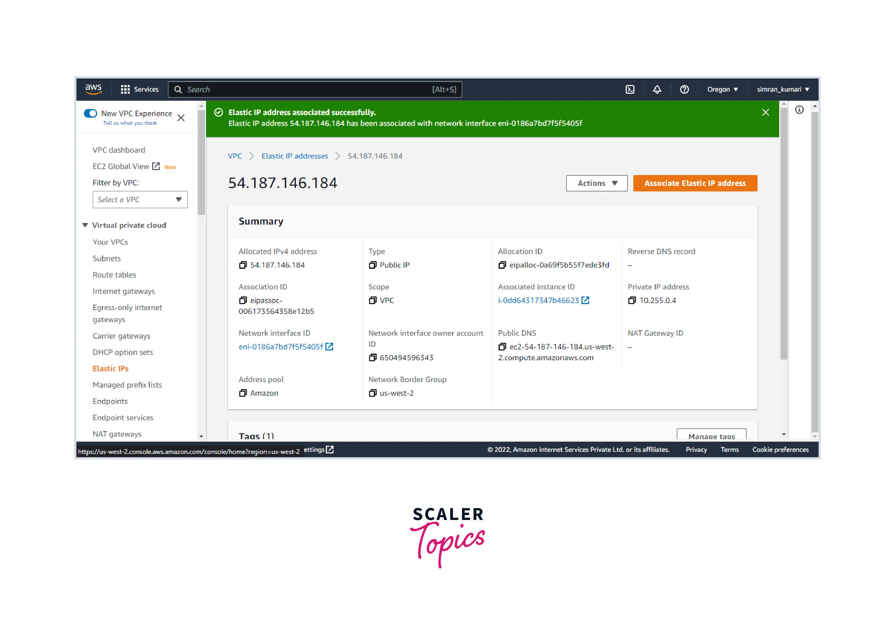 - We set up the Elastic Ip and successfully associated it with the network interface.