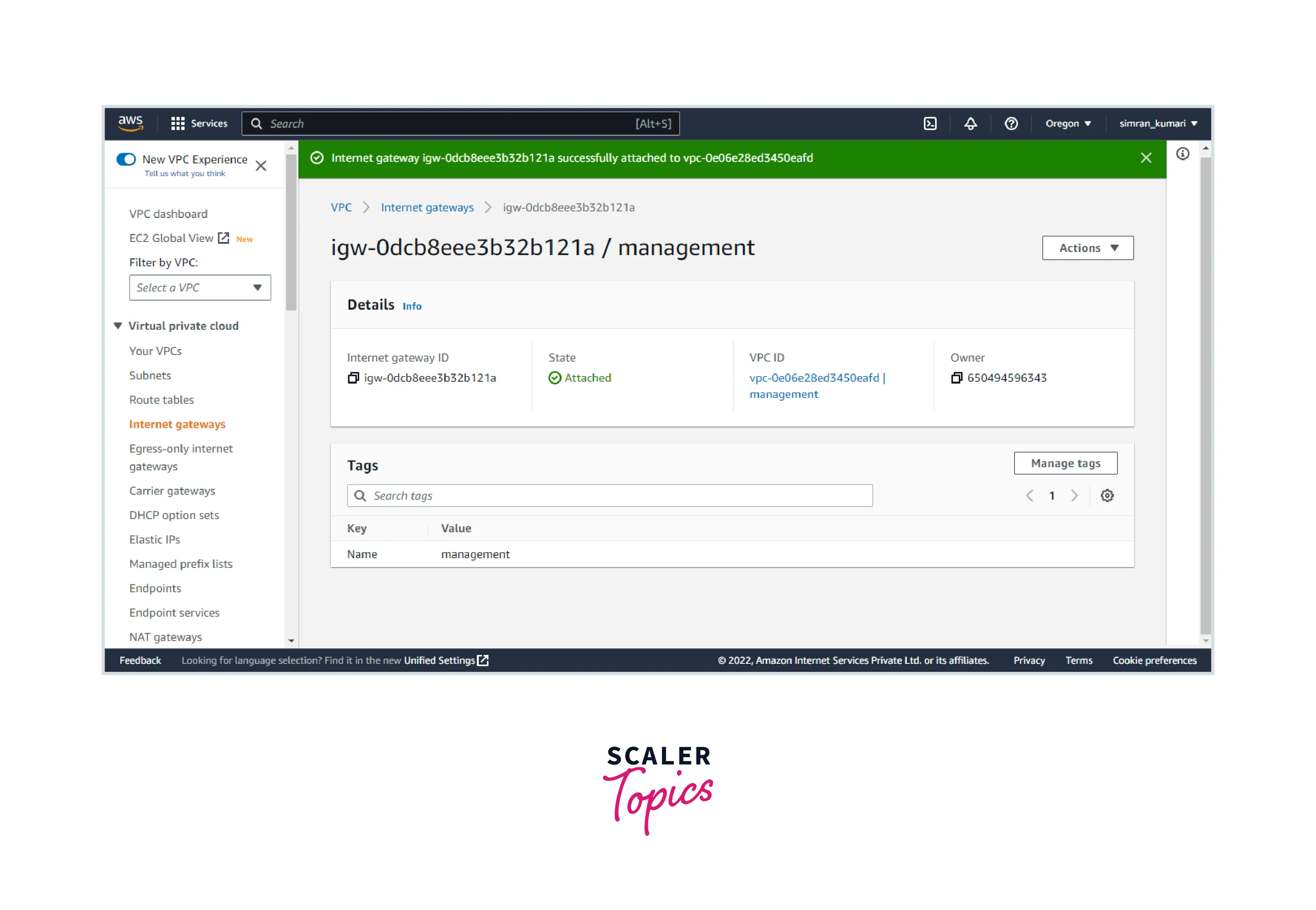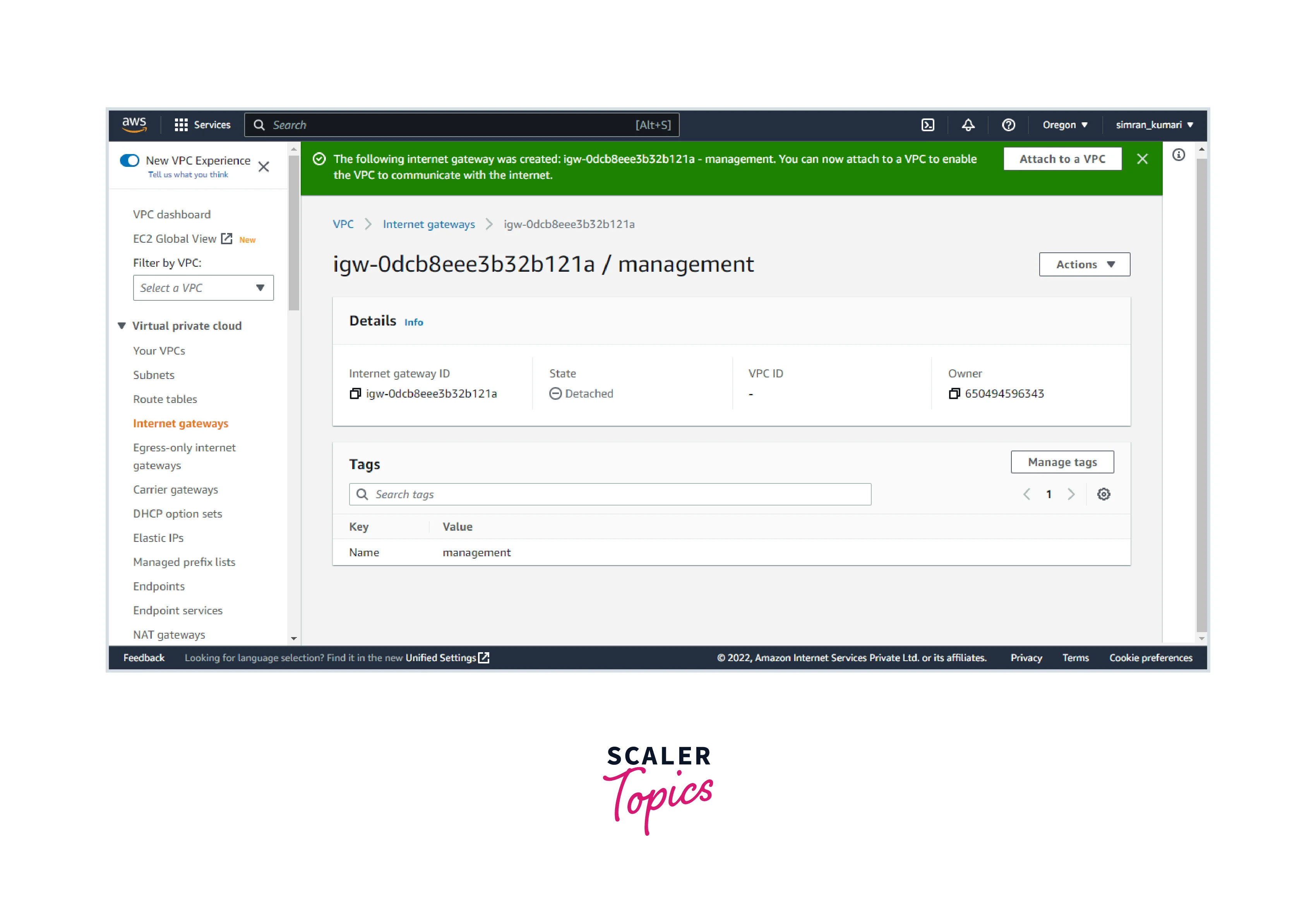 - The internet gateway is successfully attached to the VPC.