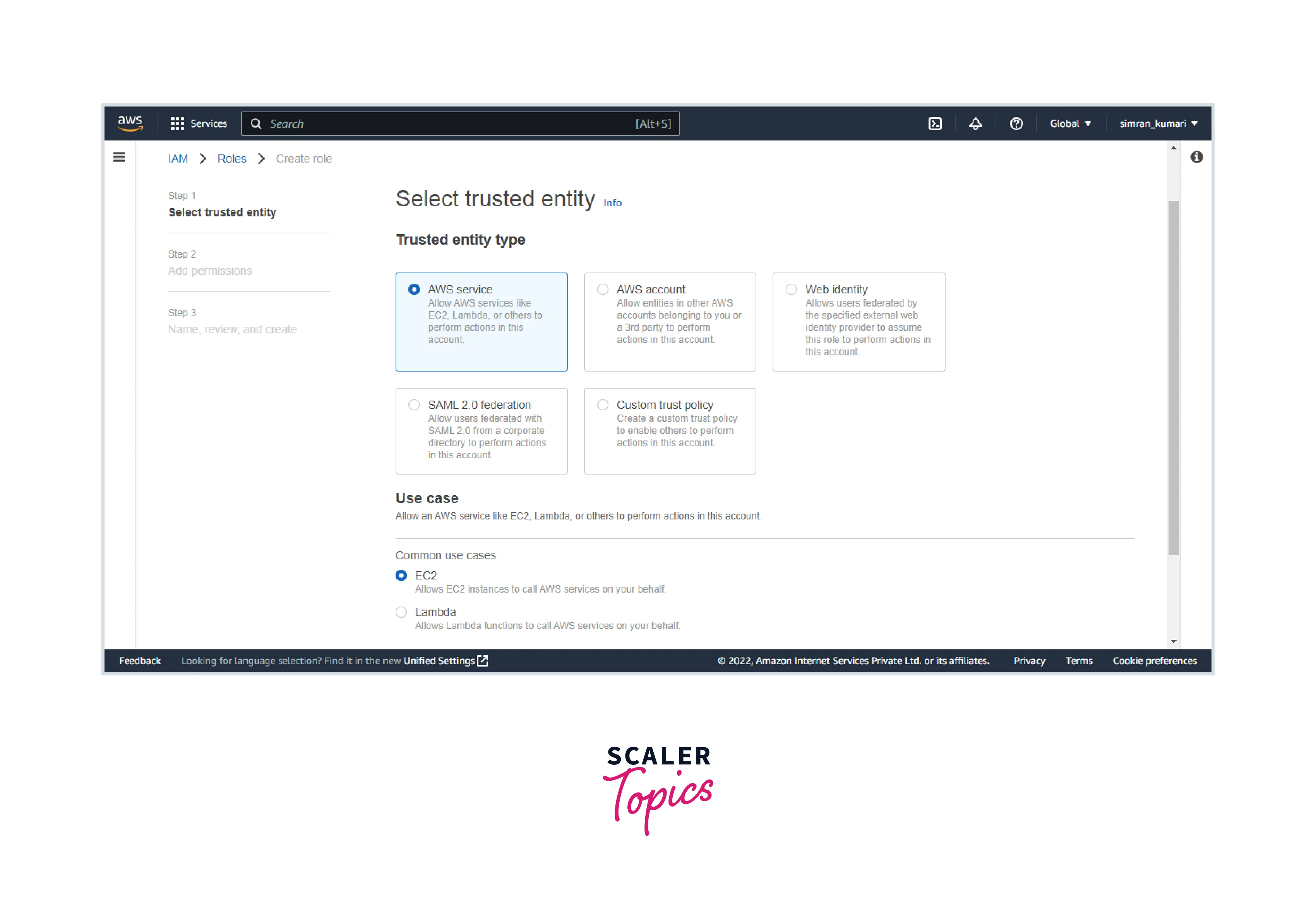 Choose the AWS services as a trusted entity and choose EC2.