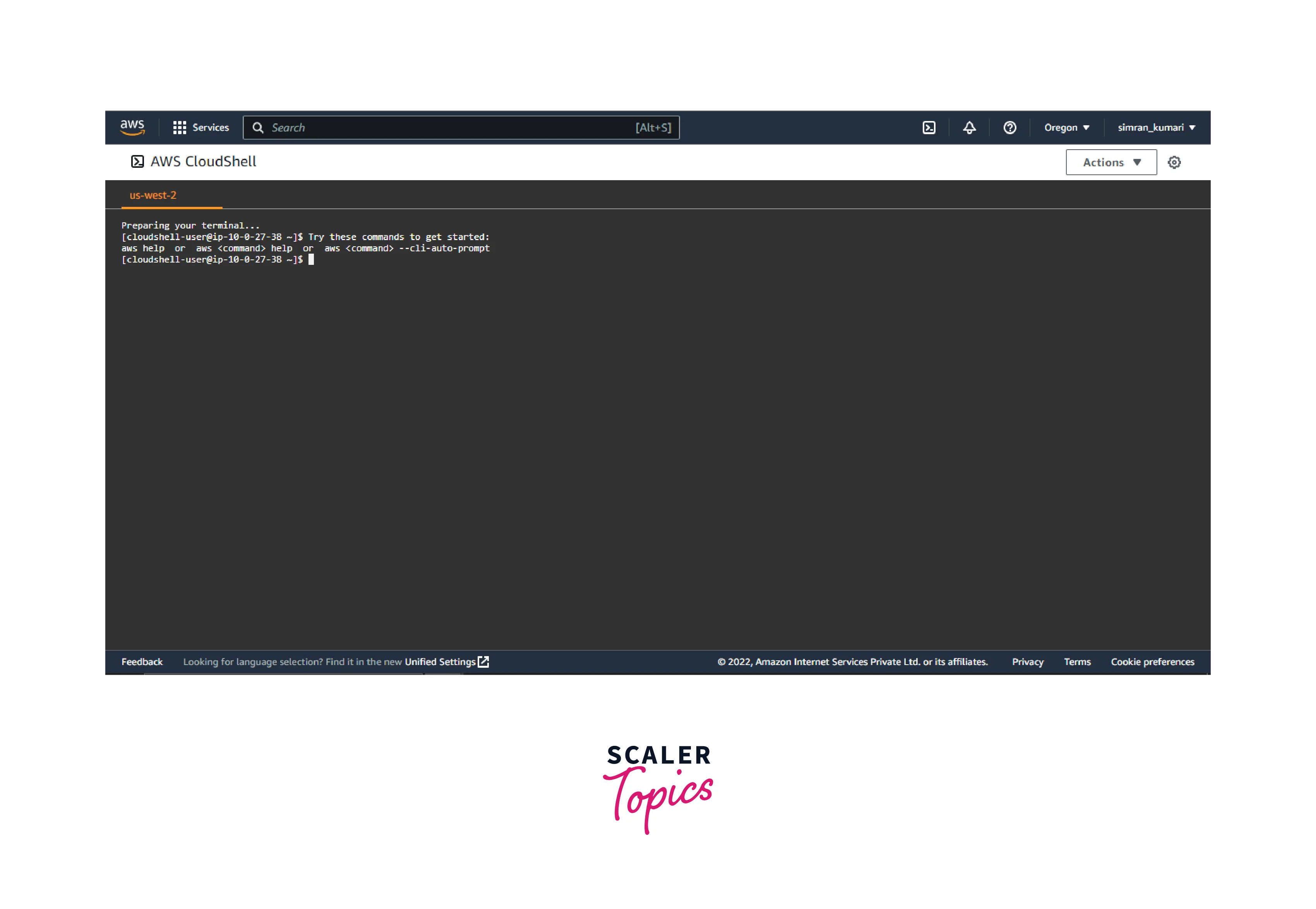 - Click on the AWS CloudShell icon.