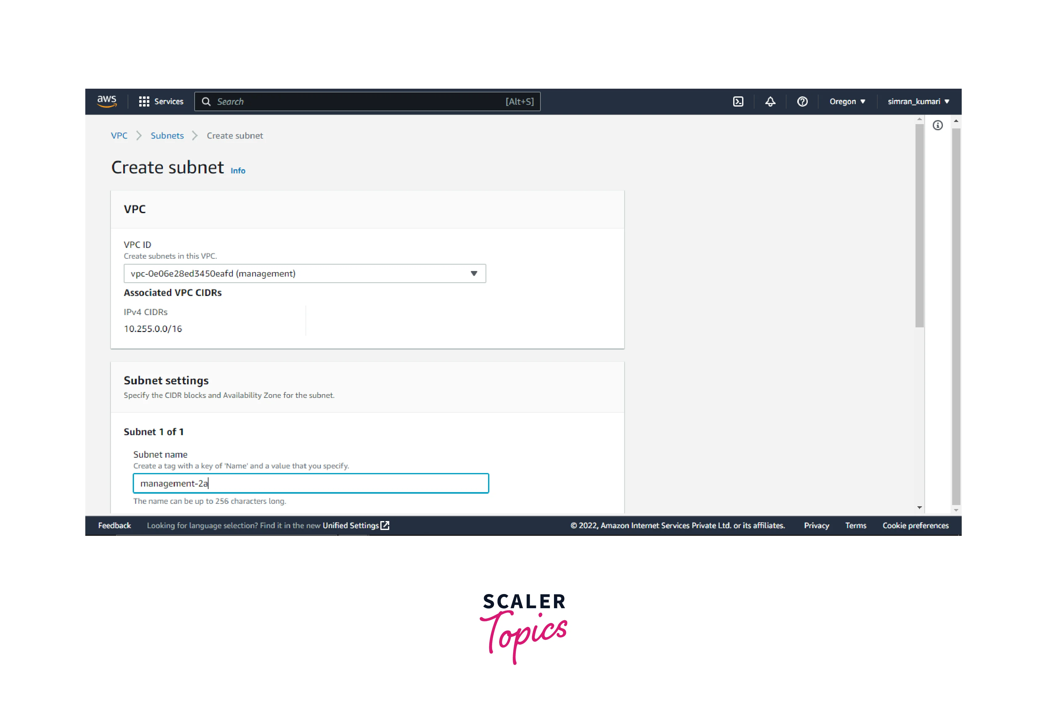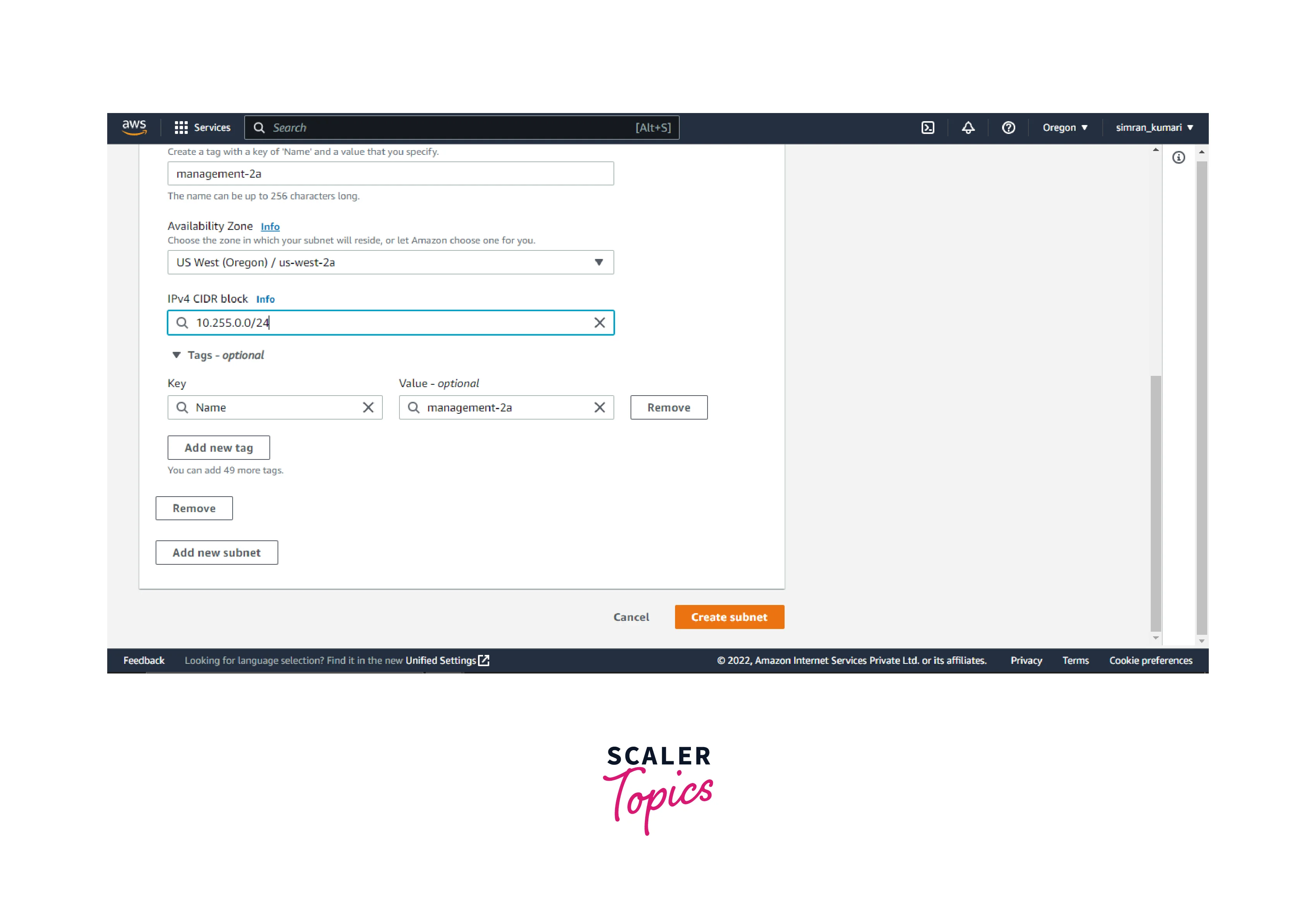 - Choose the VPC and fill in the name for the subnet.