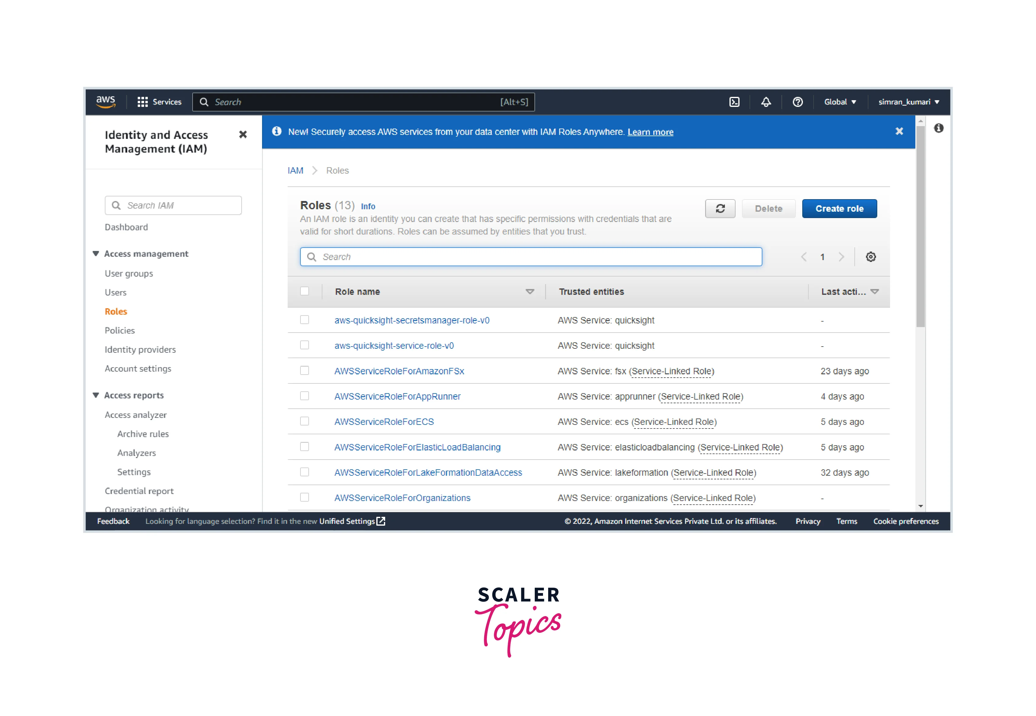 Search IAM in the search bar and click on Roles.