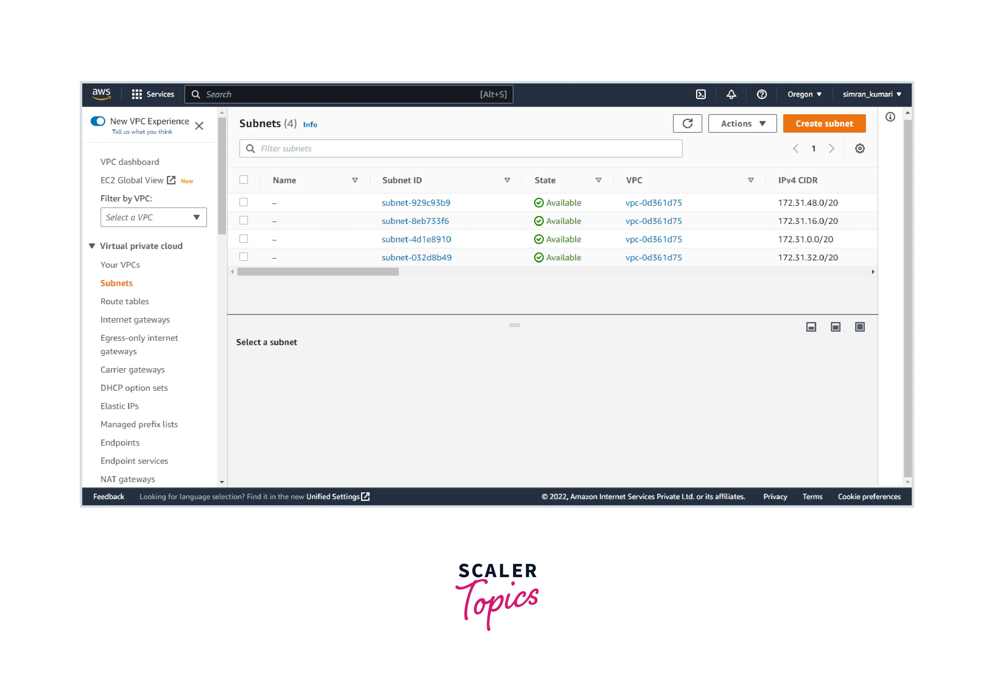 - On the next screen, click on subnets and click on Create subnet.