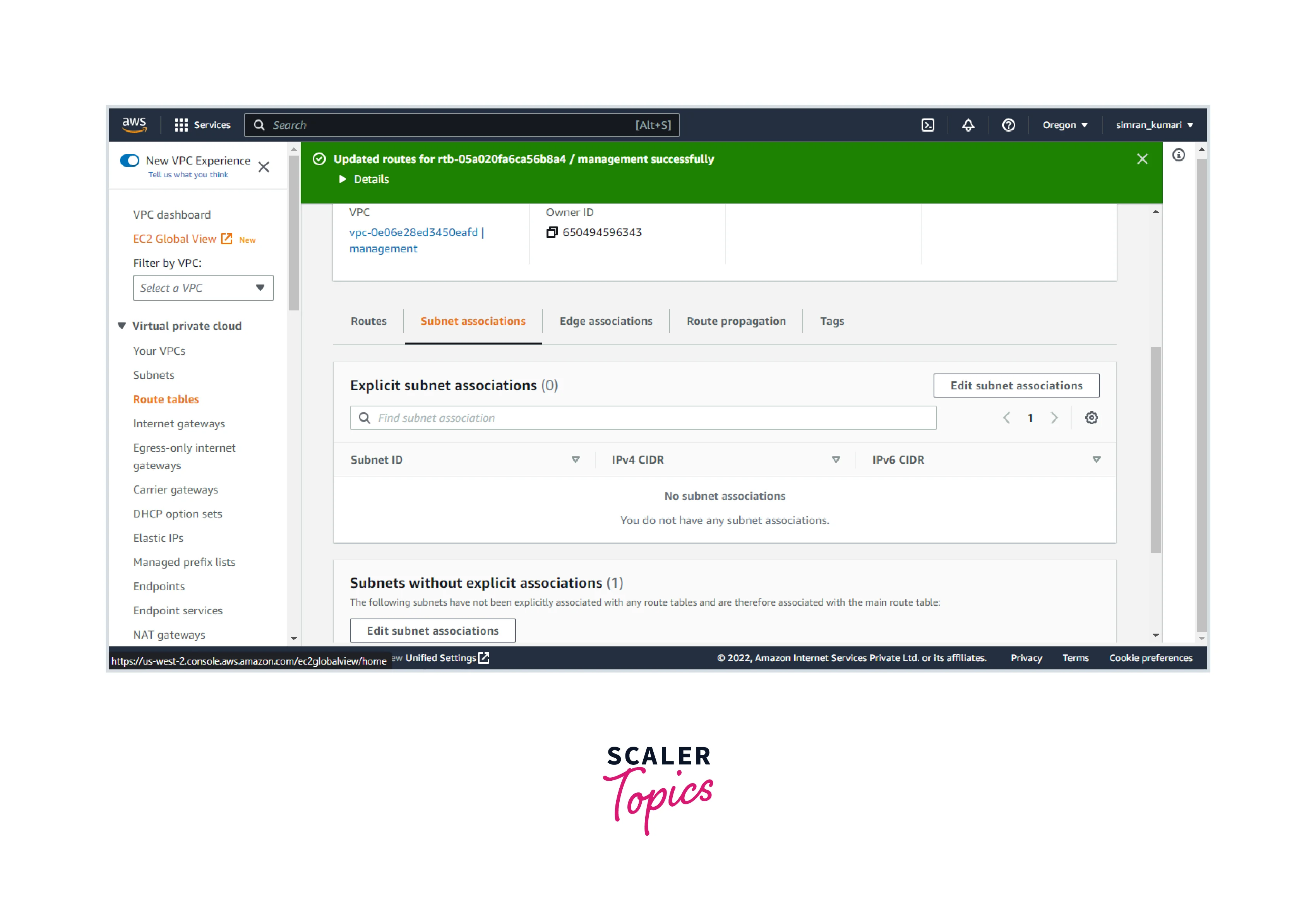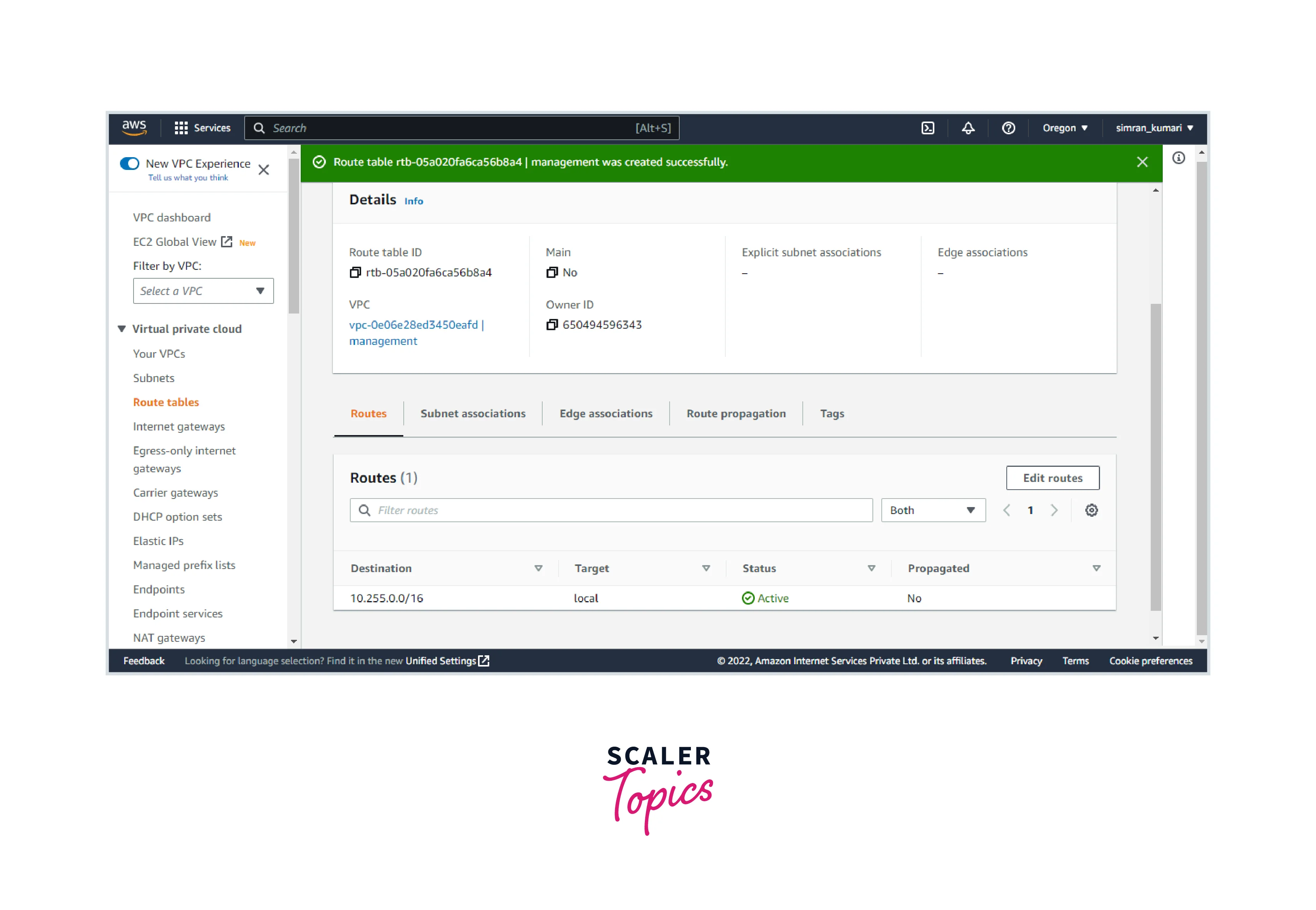 - The VPC route table is configured successfully.