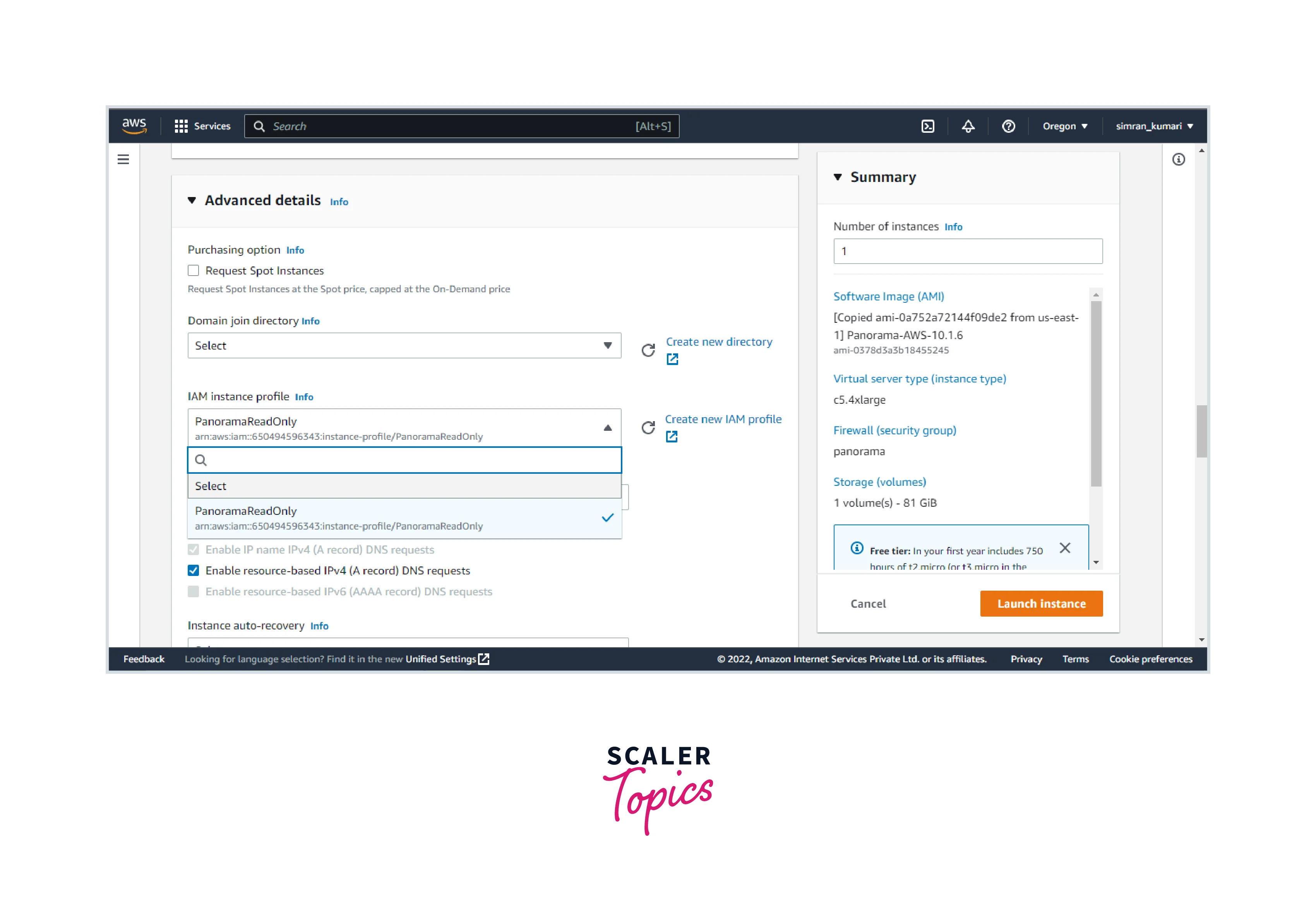 - In the Advance details, choose the IAM profile we created earlier. Click on Launch instance.