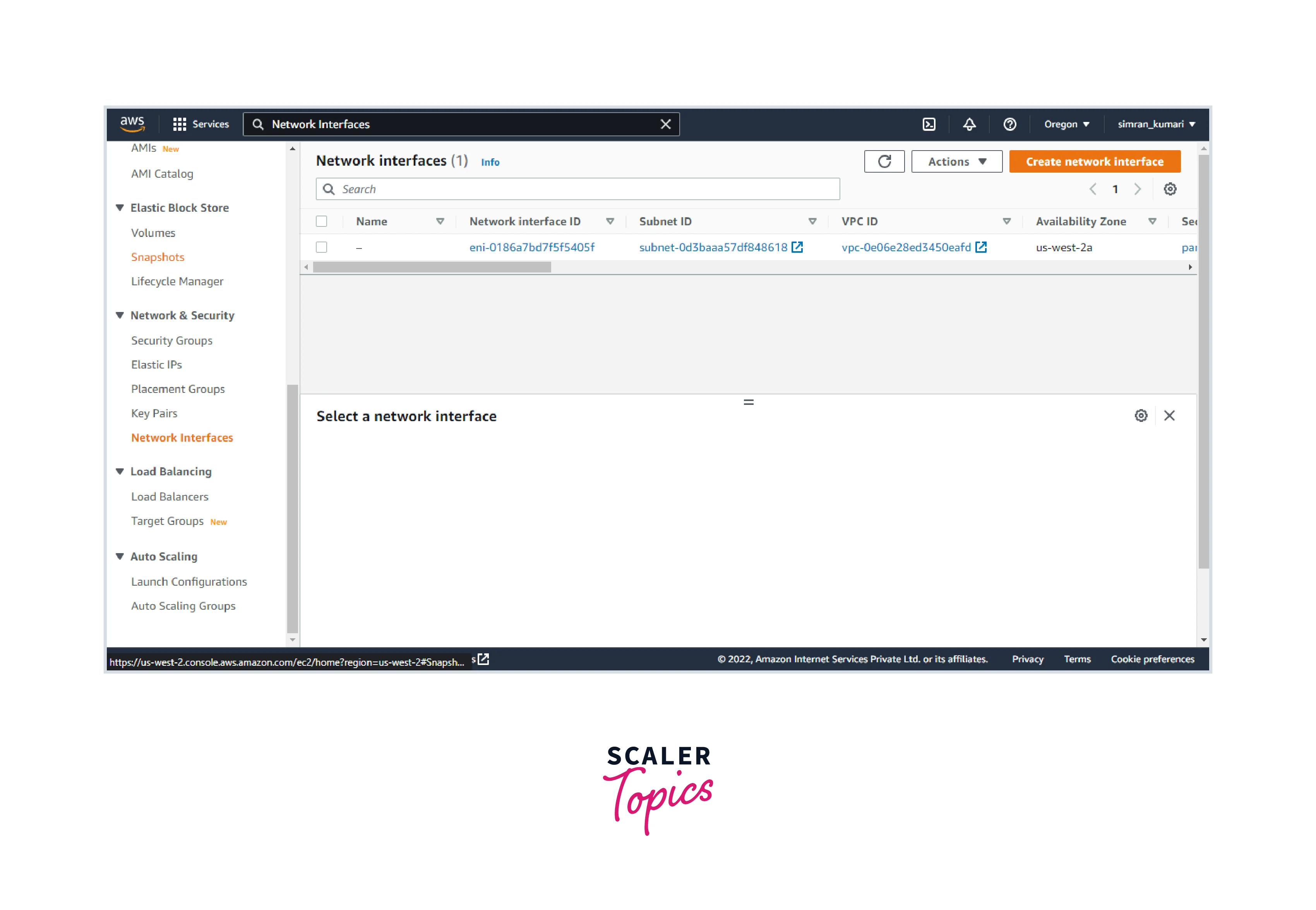 Go to the Network interface in the EC2 console menu.