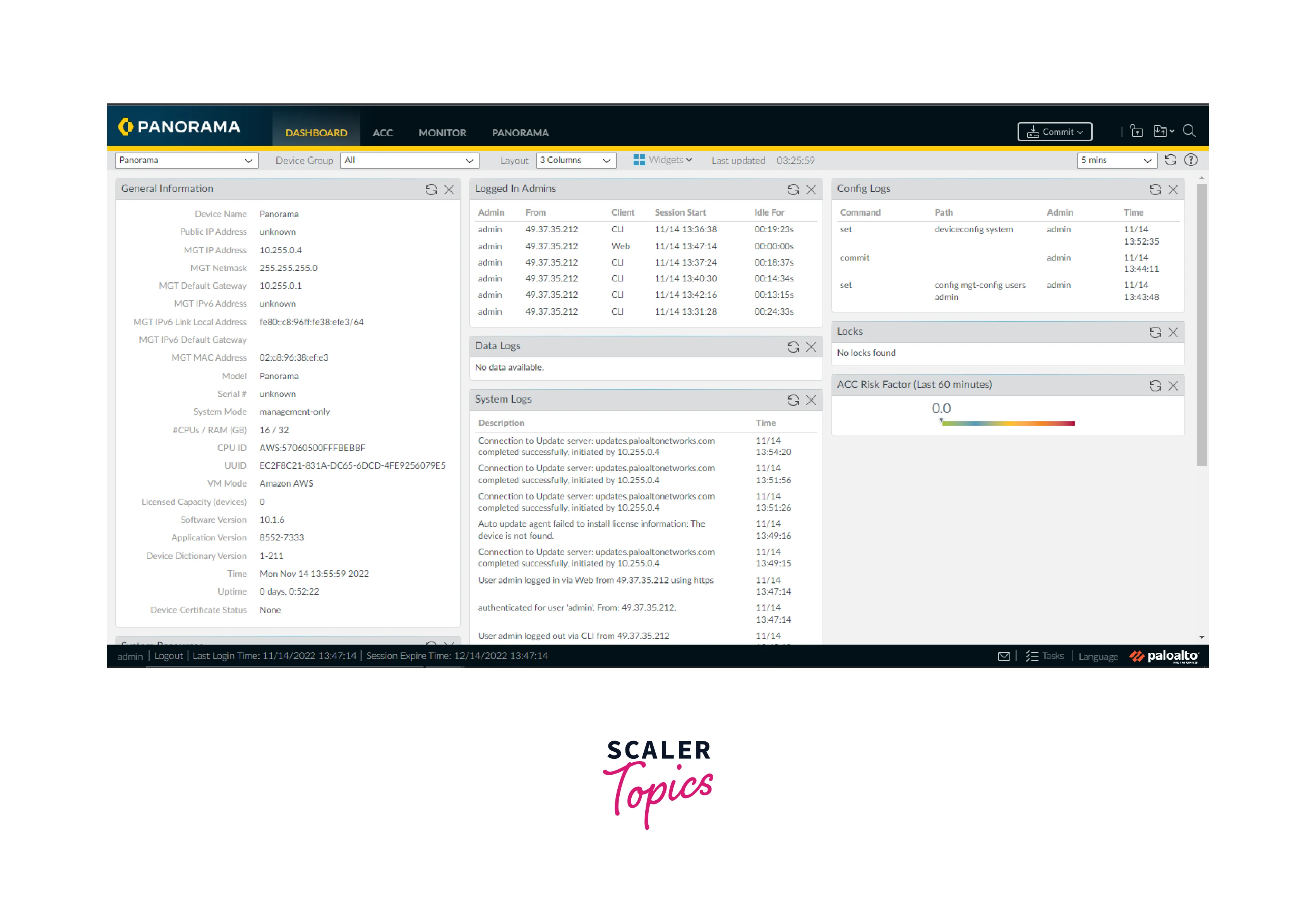 - Click ok on a few prompts and we will get on to the Panorama dashboard page.