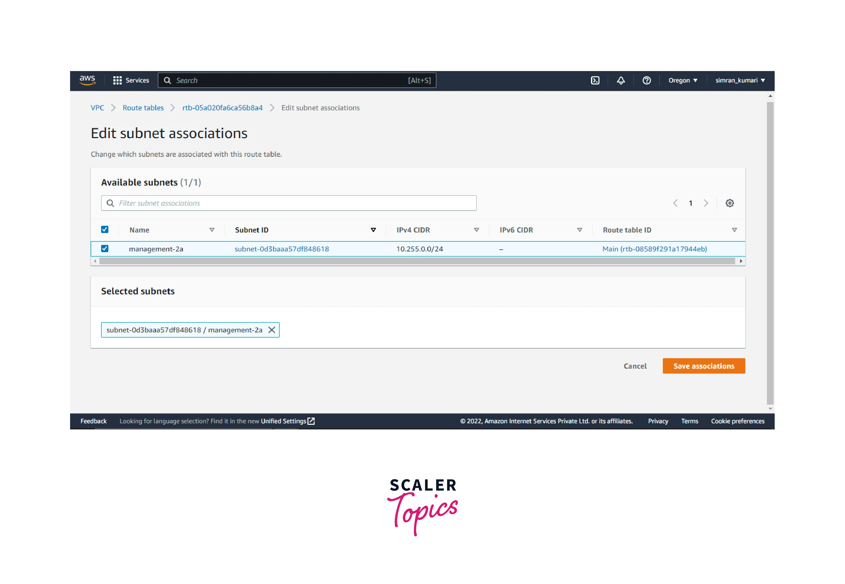 - Select the subnet and click on Save associations.