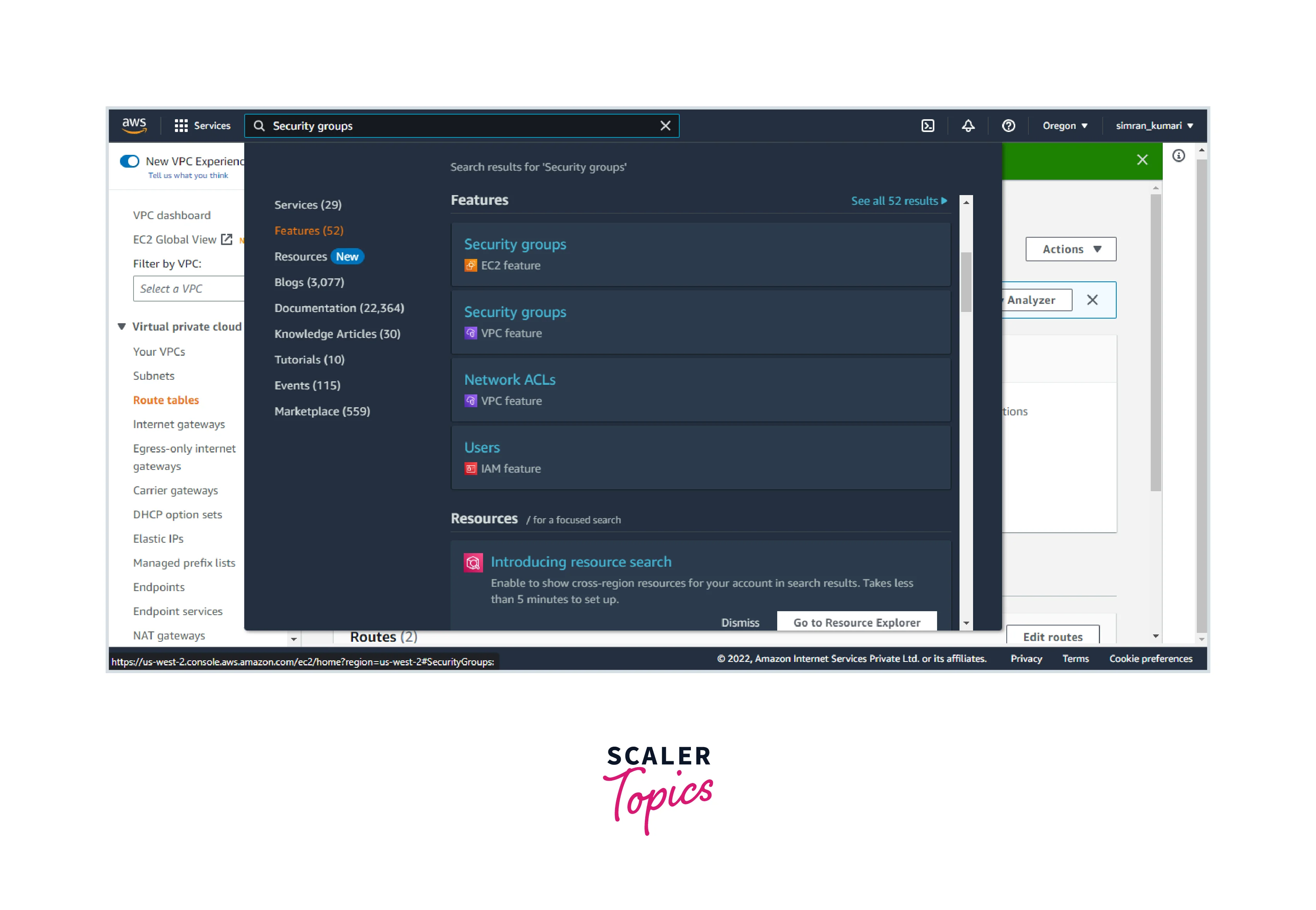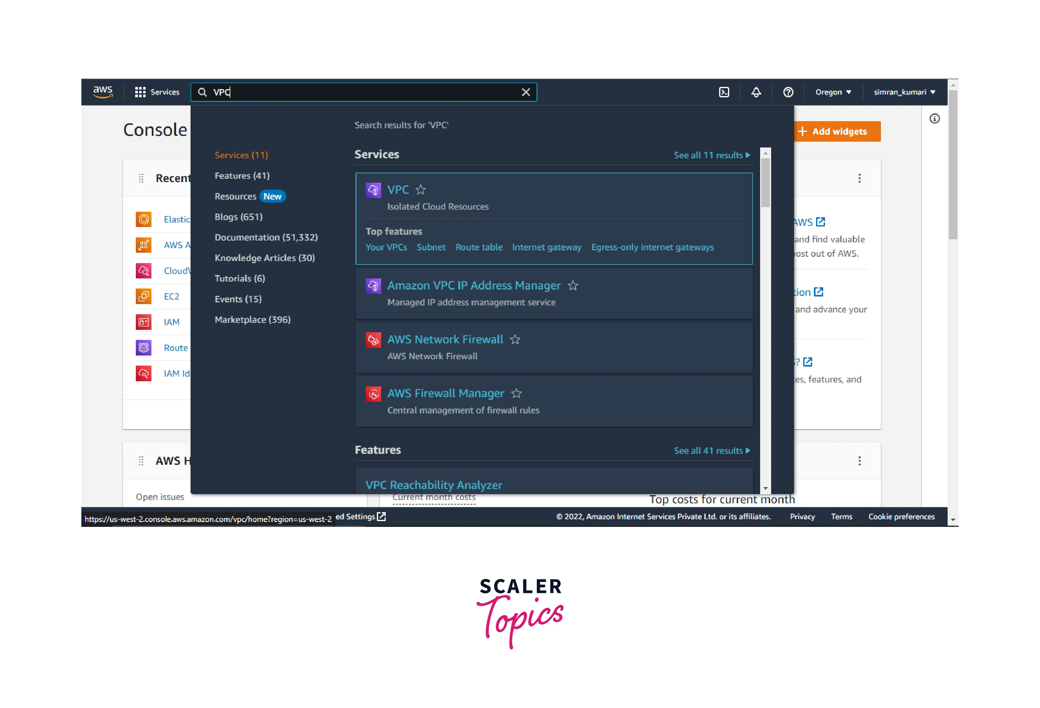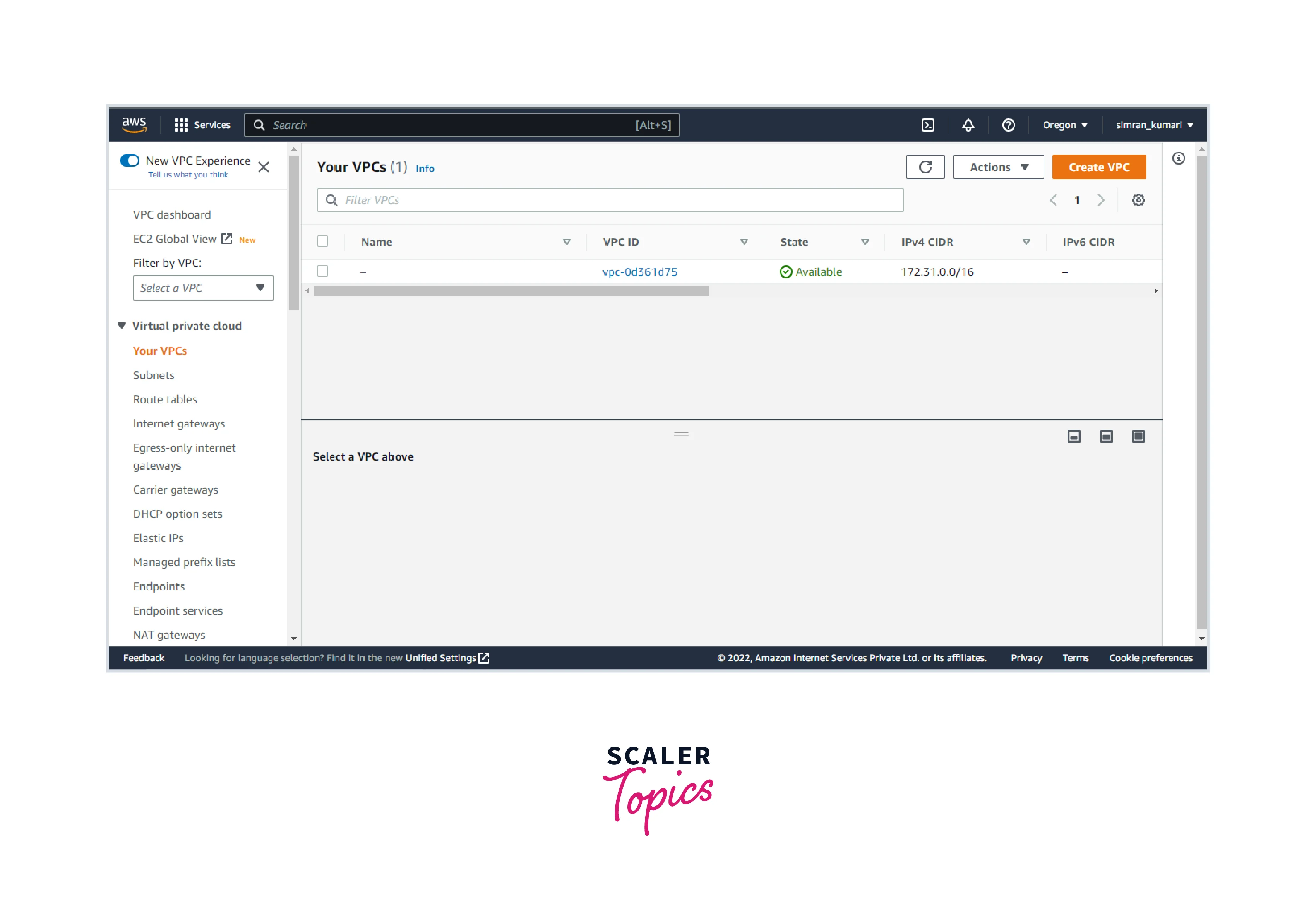 - Search VPC in the search bar and click on Your VPCs.
