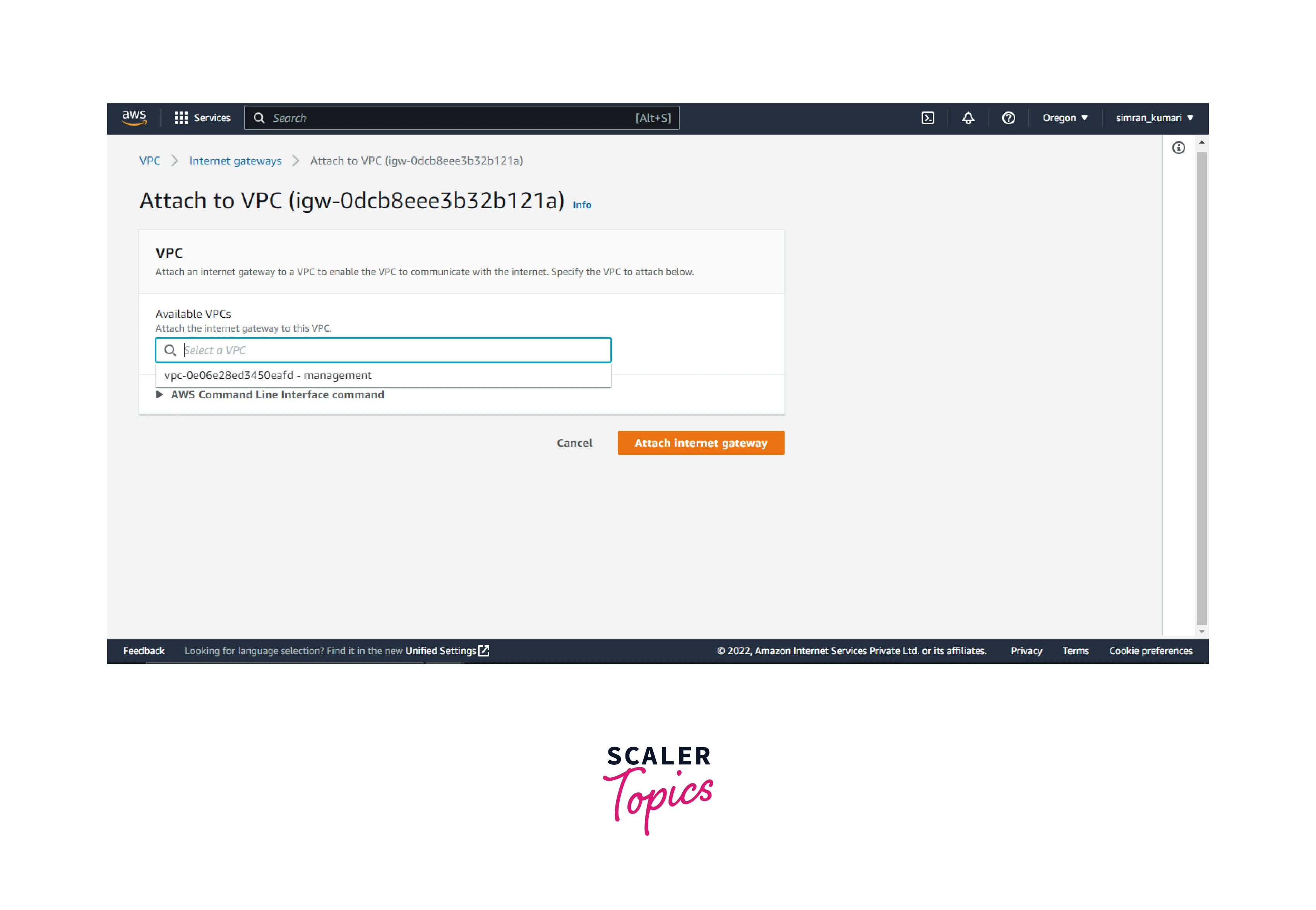 - Choose the VPC and click on Attach internet gateway.