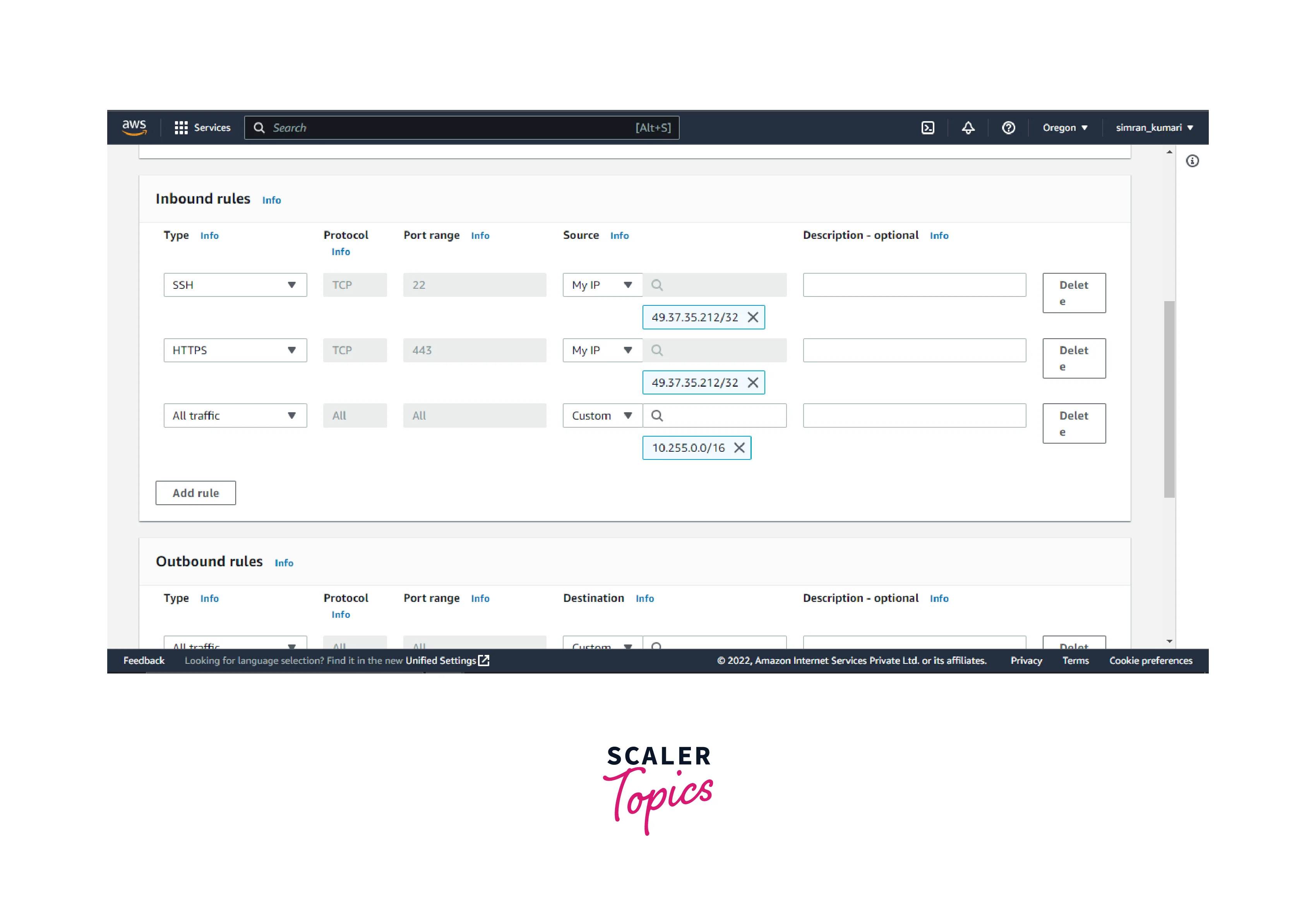 - Scroll down and set up the inbound rules.