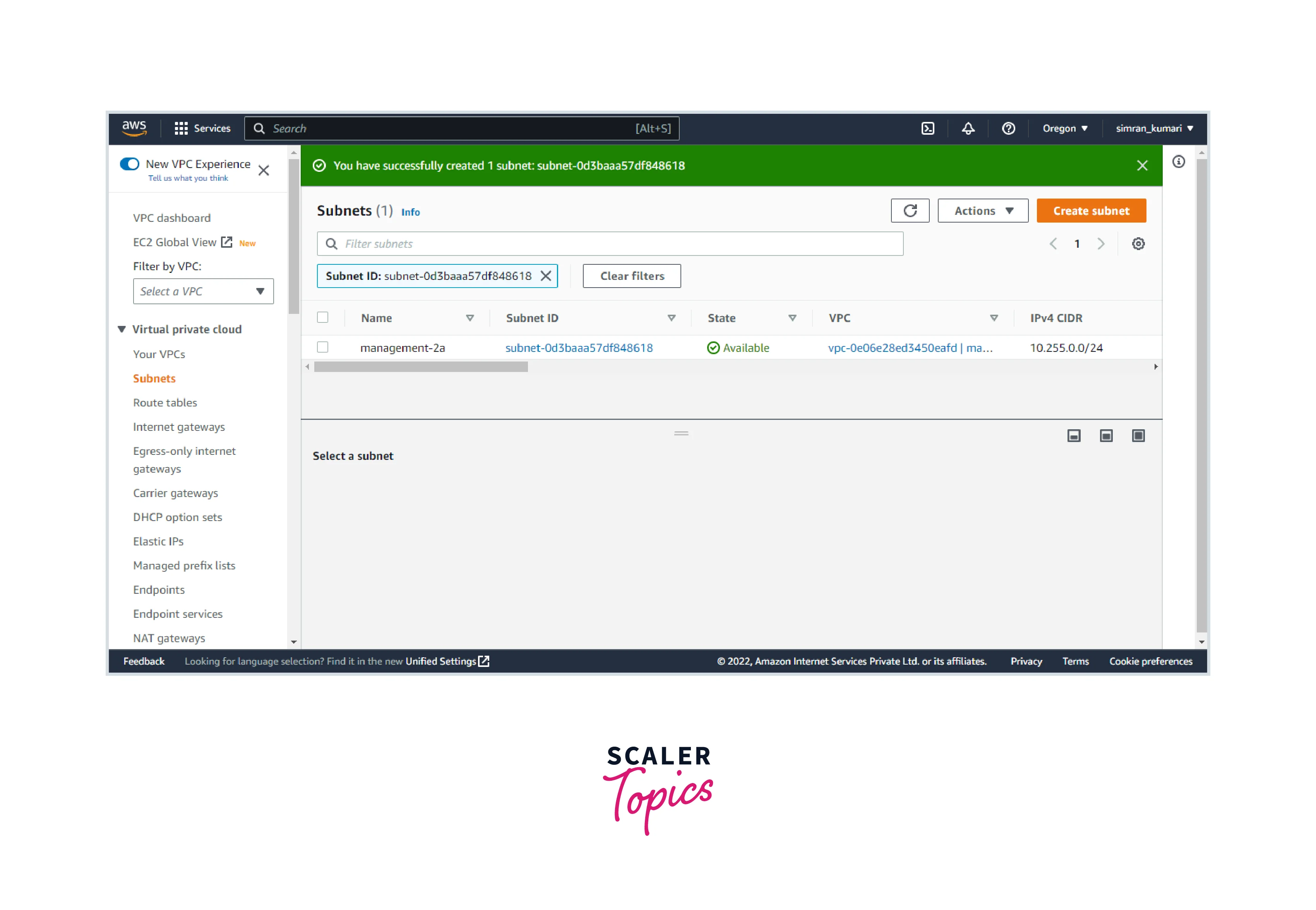 - Subnet is created successfully.