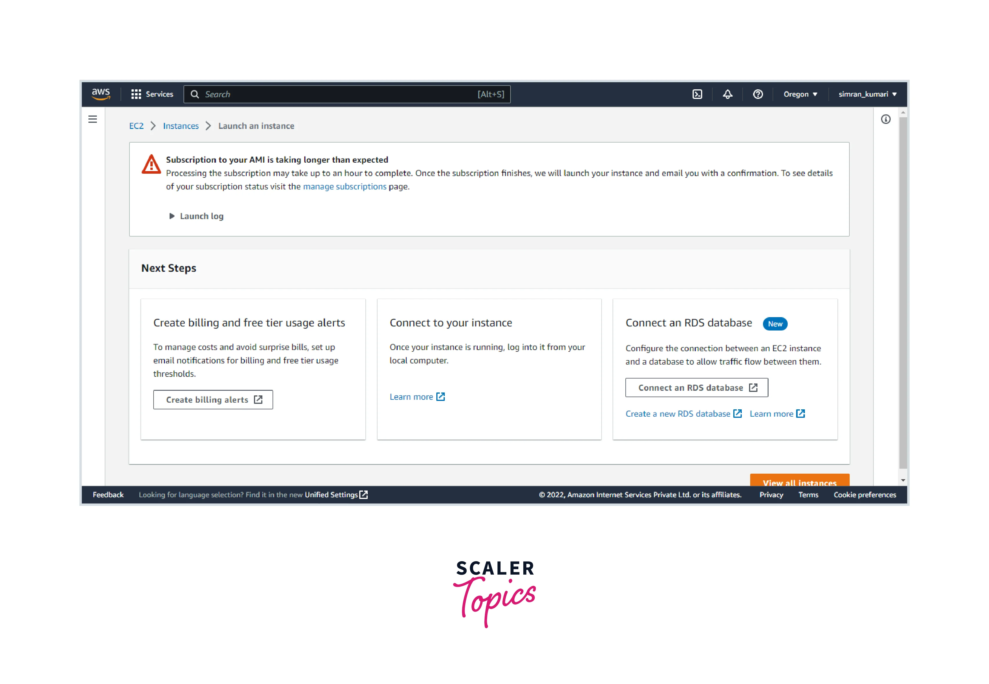 - The instance is successfully launched.