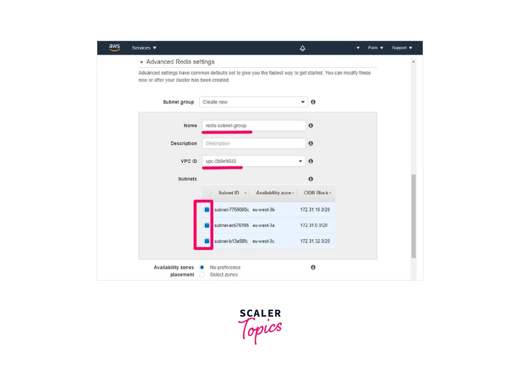 - Under "Advanced Redis settings", provide a meaningful name to the subnet group as shown below.