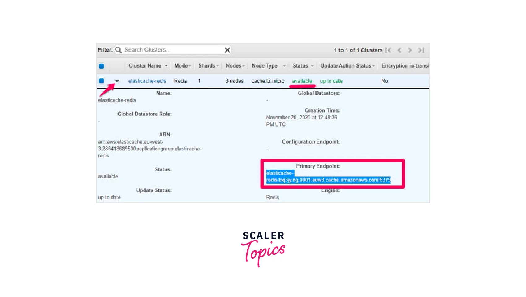 - After ensuring that the AWS Redis Cluster is operational, copy the primary endpoint URL, which will be utilized by the Website later.
