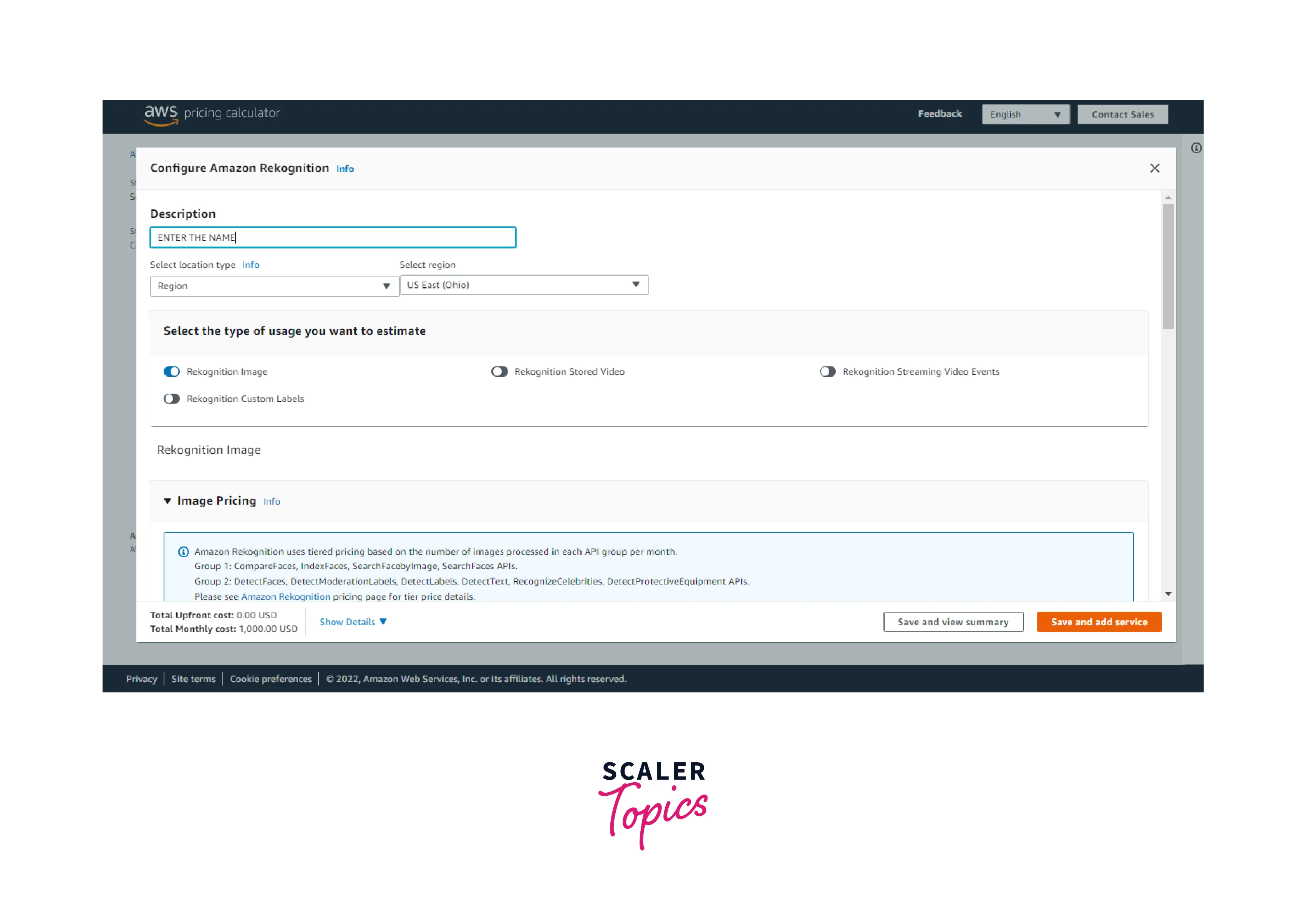 AWS Rekognition Picture makes it simple to include image analysis into your apps by leveraging proven, highly scalable deep learning technology that does not need a machine learning experience. You pay for what you use with AWS Rekognition Image. There is no minimum cost or up-front commitment. AWS Rekognition Picture has two costs: the cost of image analysis and the cost of face information storage.