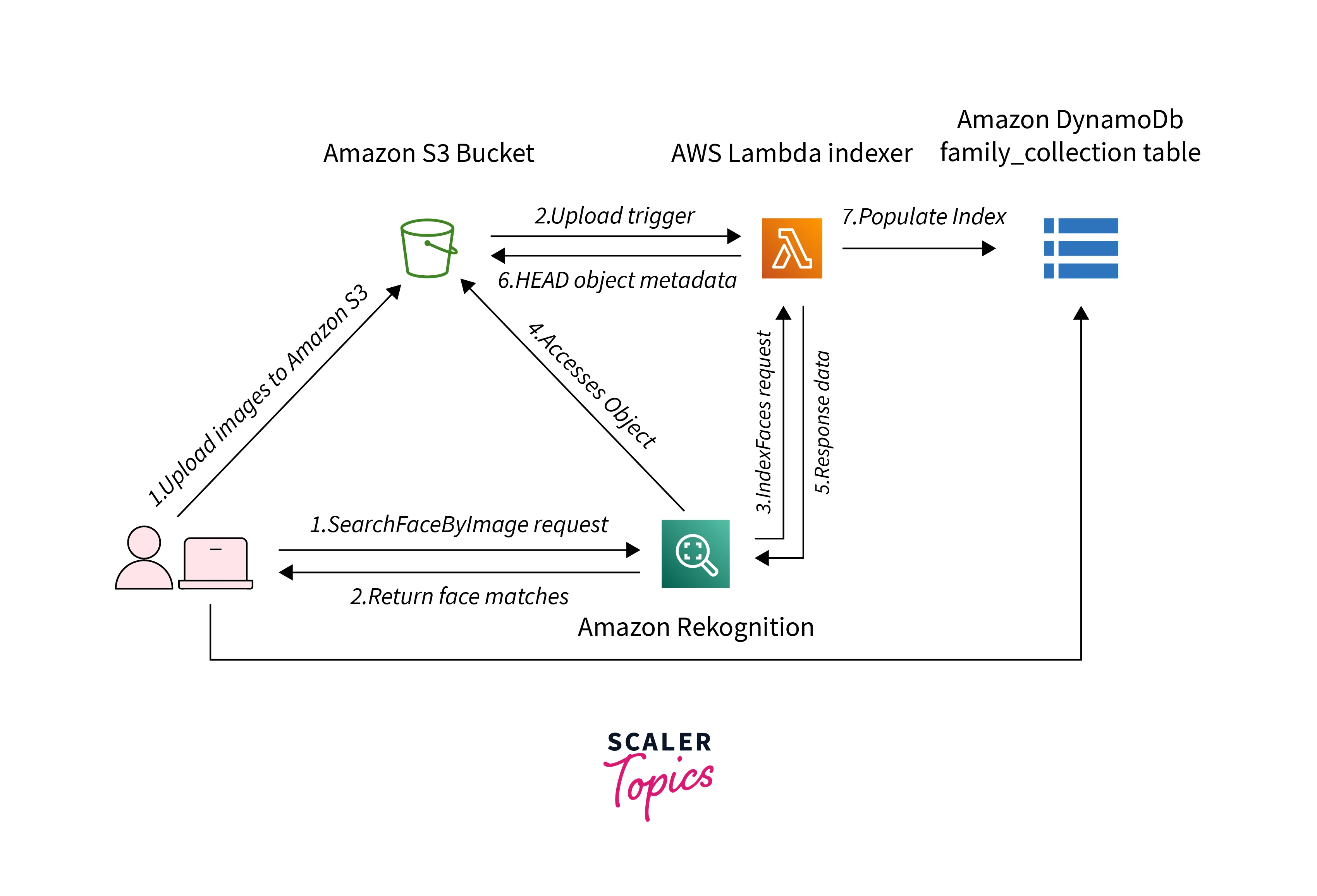 Facial Analysis With AWS Rekognition, you may search pictures, save videos, and stream videos for faces that match those in a face collection container. A face collection lists all the faces you possess and manage. In AWS Rekognition, searching for individuals based on their faces needs two key steps: