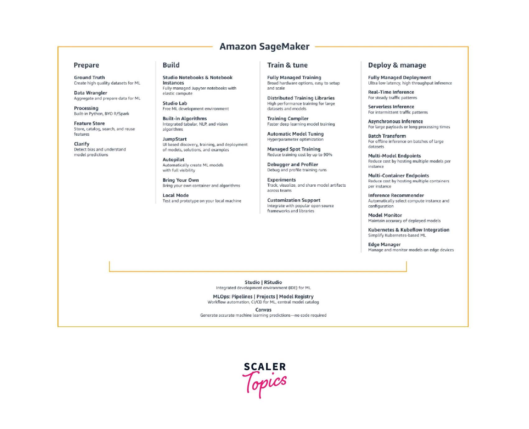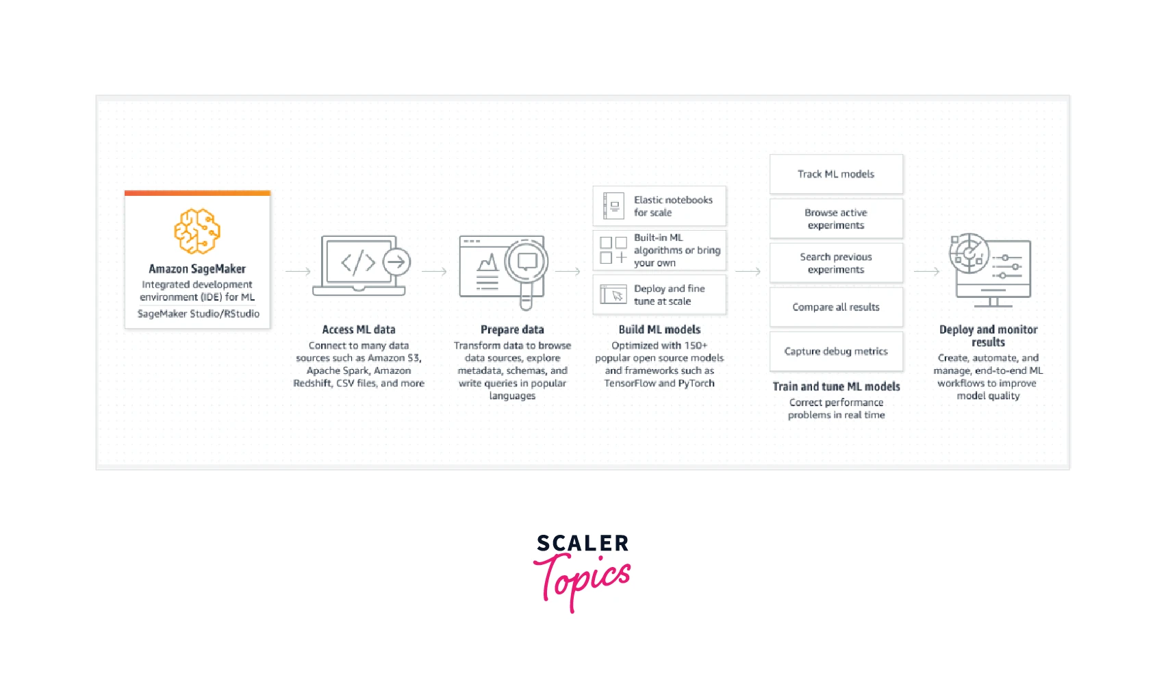 Amazon SageMaker is a fully managed machine learning service that AWS offers which helps to quickly and easily build, train, and directly deploy the ML models into the production-ready environment. AWS Sagemaker helps in creating efficient and more accurate rate ML models along with great integration with other AWS services like S3 bucket, and AWS Lambda for monitoring the performance, AWS Cloudwatch is also a great monitoring tool. For easily accessing and doing data exploration or analysis you can easily integrate the Jupyter authoring notebook instance without the need to bother about merging servers. Extremely huge data can also be worked around with common machine learning algorithms in a distributed environment which can be optimized to run efficiently.AWS SageMaker provides a platform for flexible distributed training options where you get the liberty to bring your own algorithms and frameworks and deploy your ML model into a secure and scalable environment with just a few clicks offered by SageMaker Studio or the SageMaker console. With its low pricing, you can train and host your ML model which is billed by minutes of usage, at no minimum fees or any hidden upfront commitments.