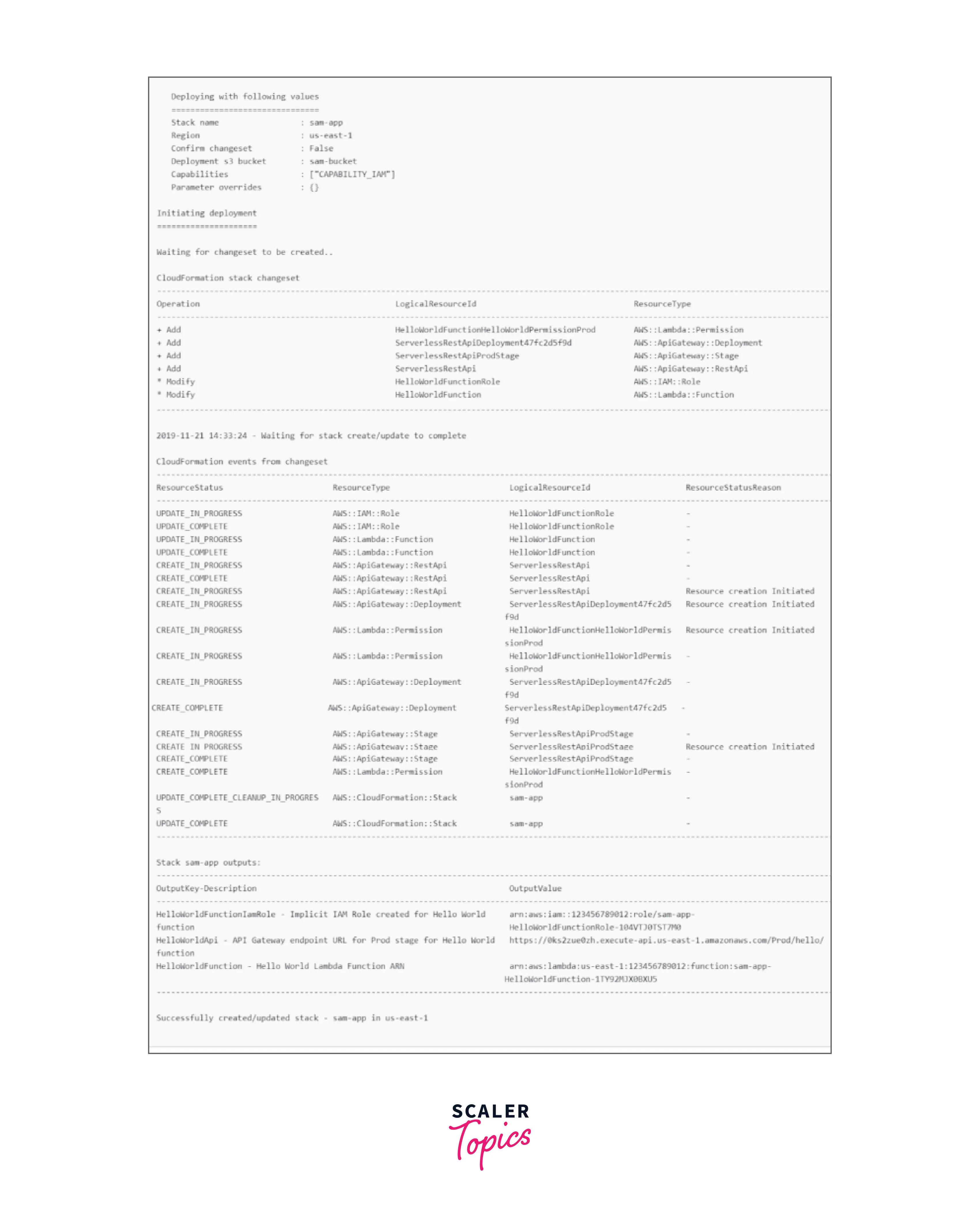 SAM Deploy: This command is used to launch a serverless application on AWS. It creates AWS resources and assigns rights and other parameters given in the AWS SAM template.