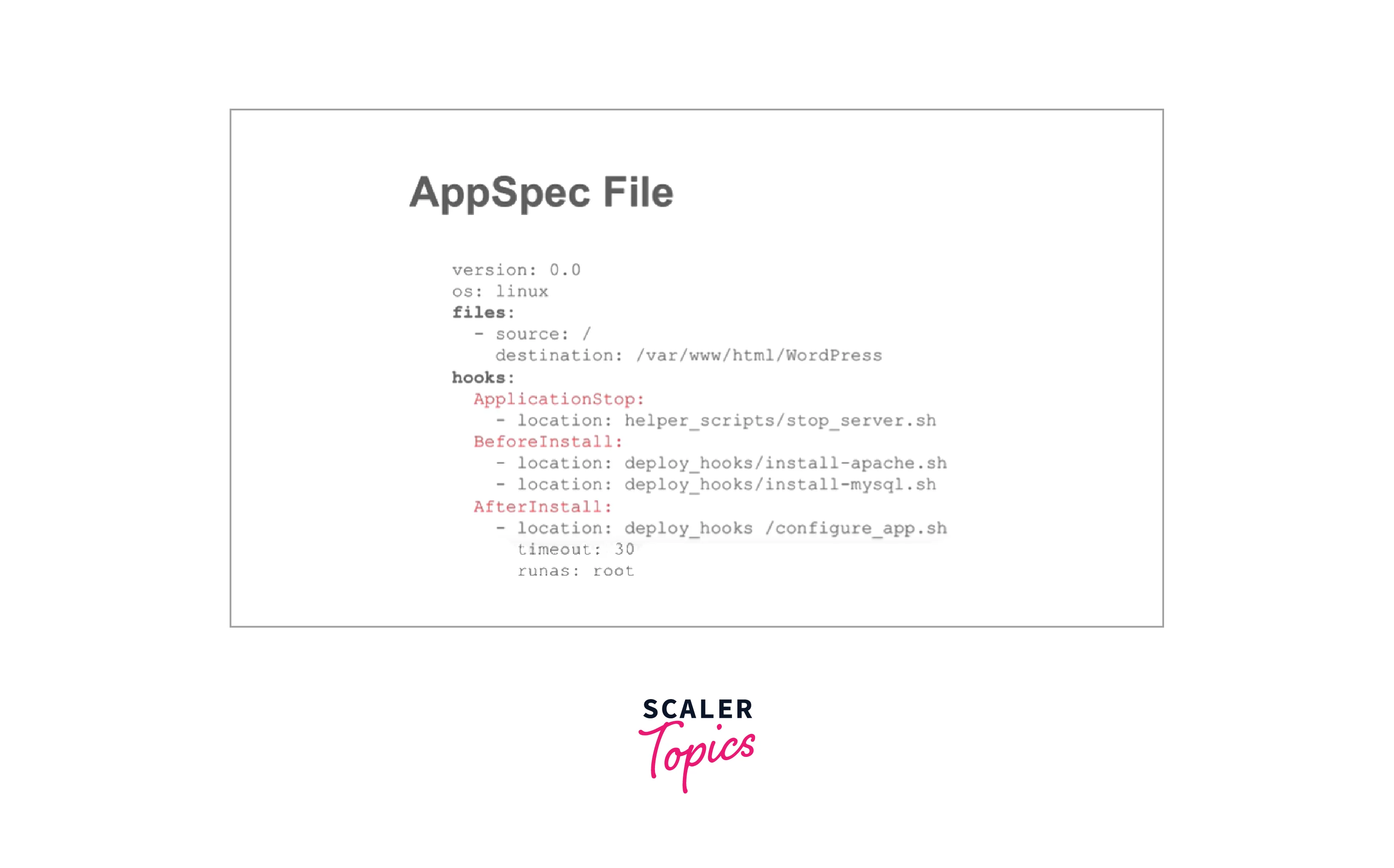 - The hooks section specifies the location of the script to run during each phase of the deployment