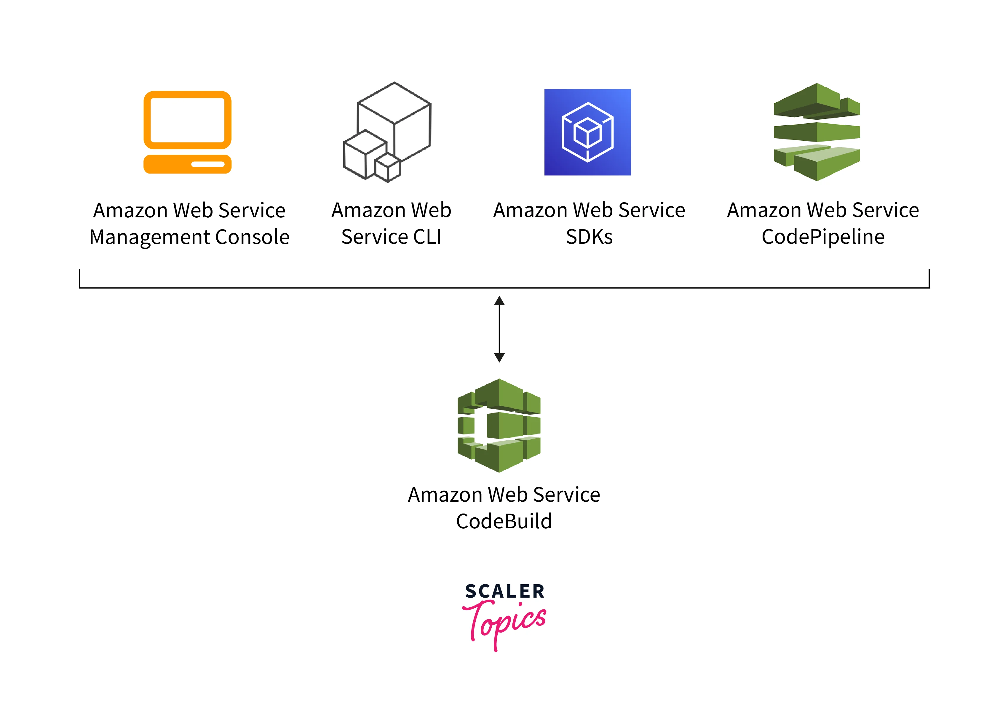 - Once code is merged with a master branch or any changes in the source repo in CodeCommit or a third-party repo such as GitHub or BitBucket, then the codes are automatically built, tested, and deployed to the destined infrastructure such as EC2 or ECS, etc.