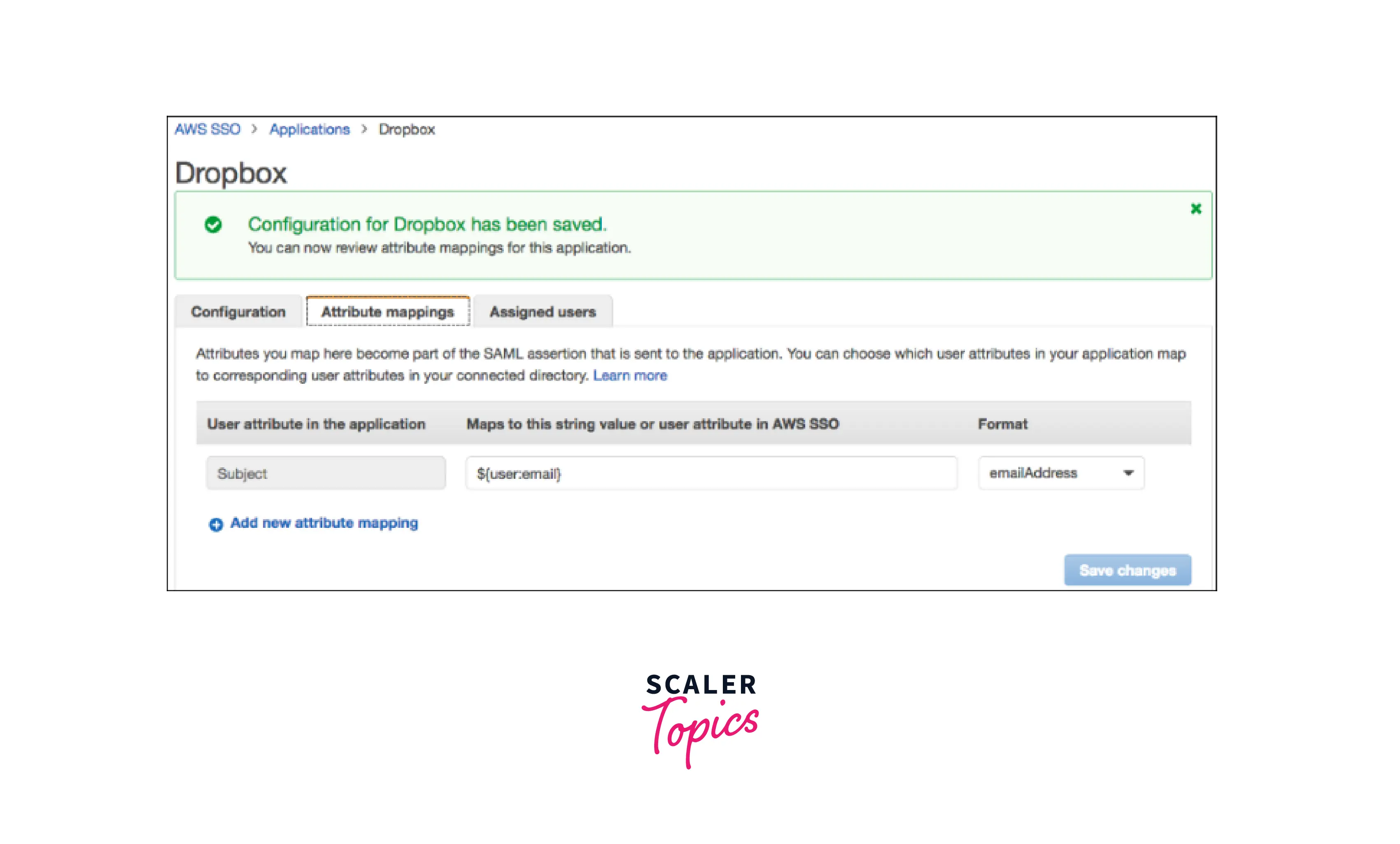 - By selecting the Attribute mappings tab, you may optionally offer extra Security Assertion Markup Language (SAML) attribute mappings. This is only required if you wish to provide user characteristics from your corporate directory to the application.