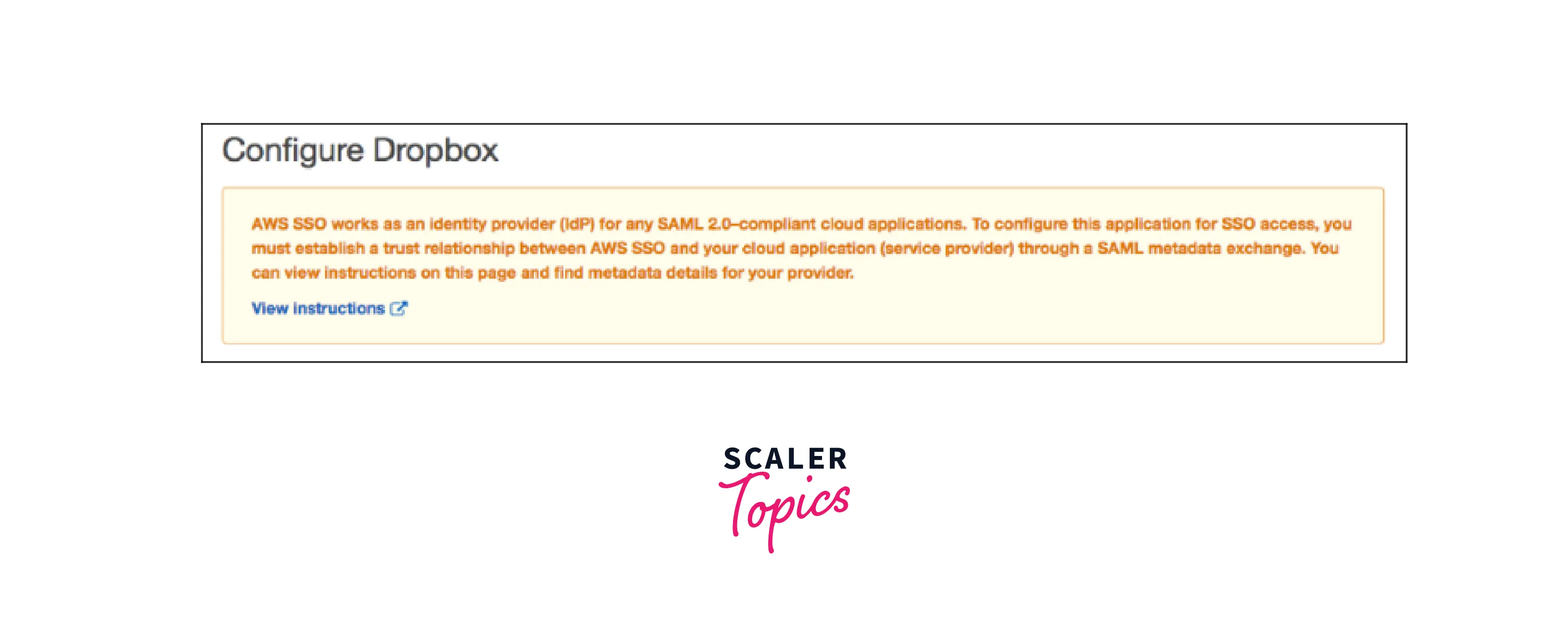 - You need to follow step-by-step instructions to set up the application for SSO access depending on whatever application you select. The instructions direct the user to set up your application using the information supplied in the AWS SSO metadata section before providing the application's configuration information. When you're finished, choose Save changes.