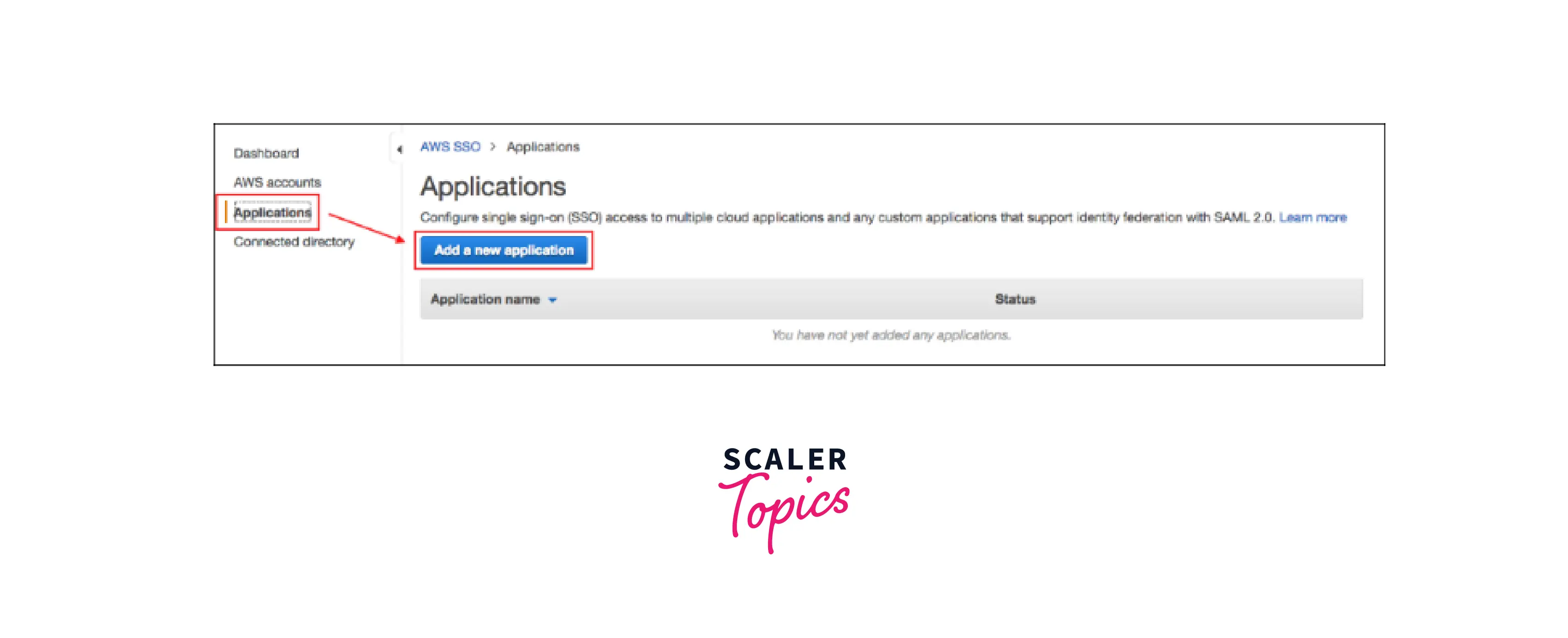 - Select Applications in the navigation pane of the AWS SSO interface.