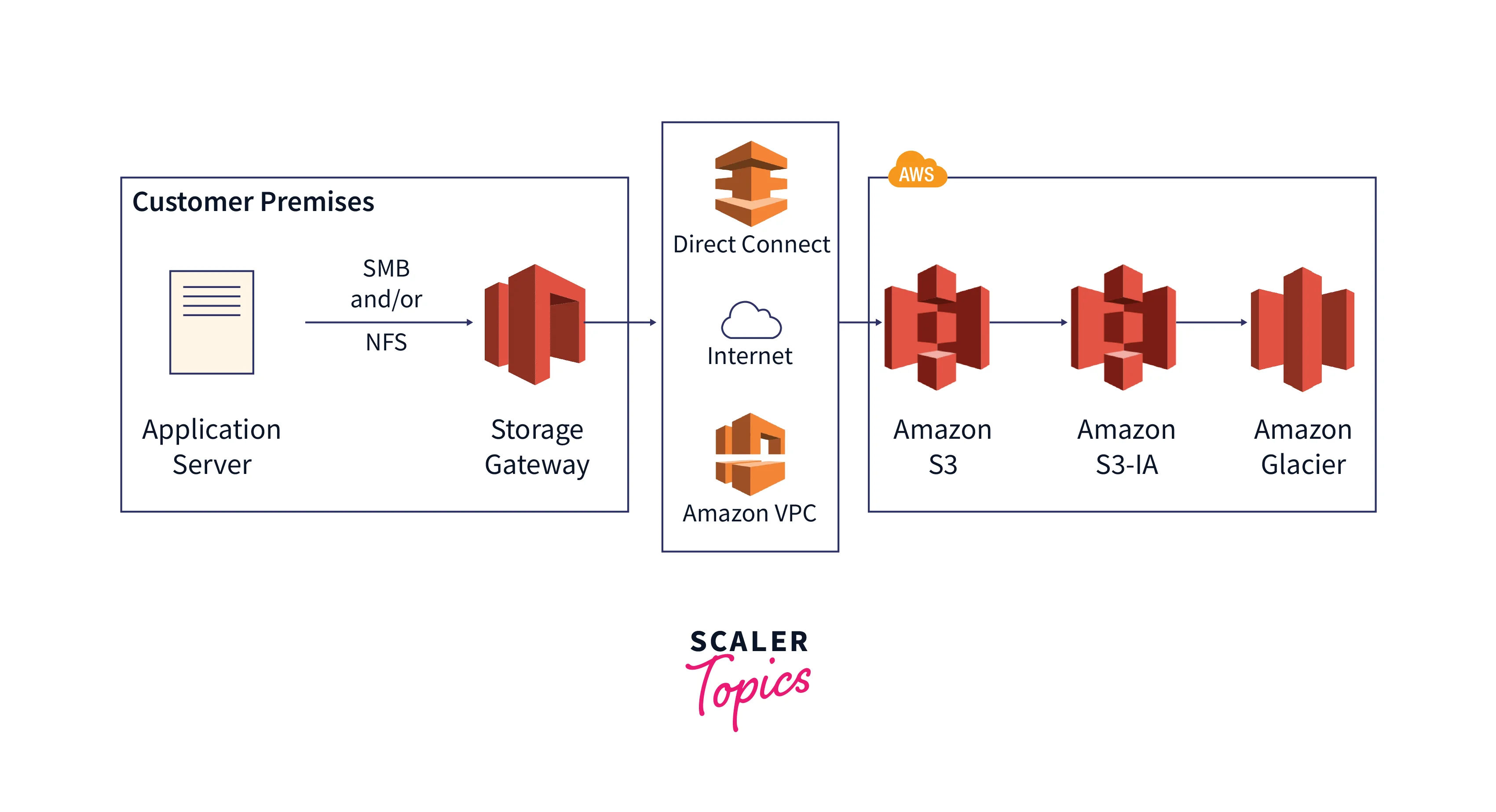 An on-premises gateway to infinite cloud storage is offered by the hybrid cloud storage solution known as AWS Storage Gateway.