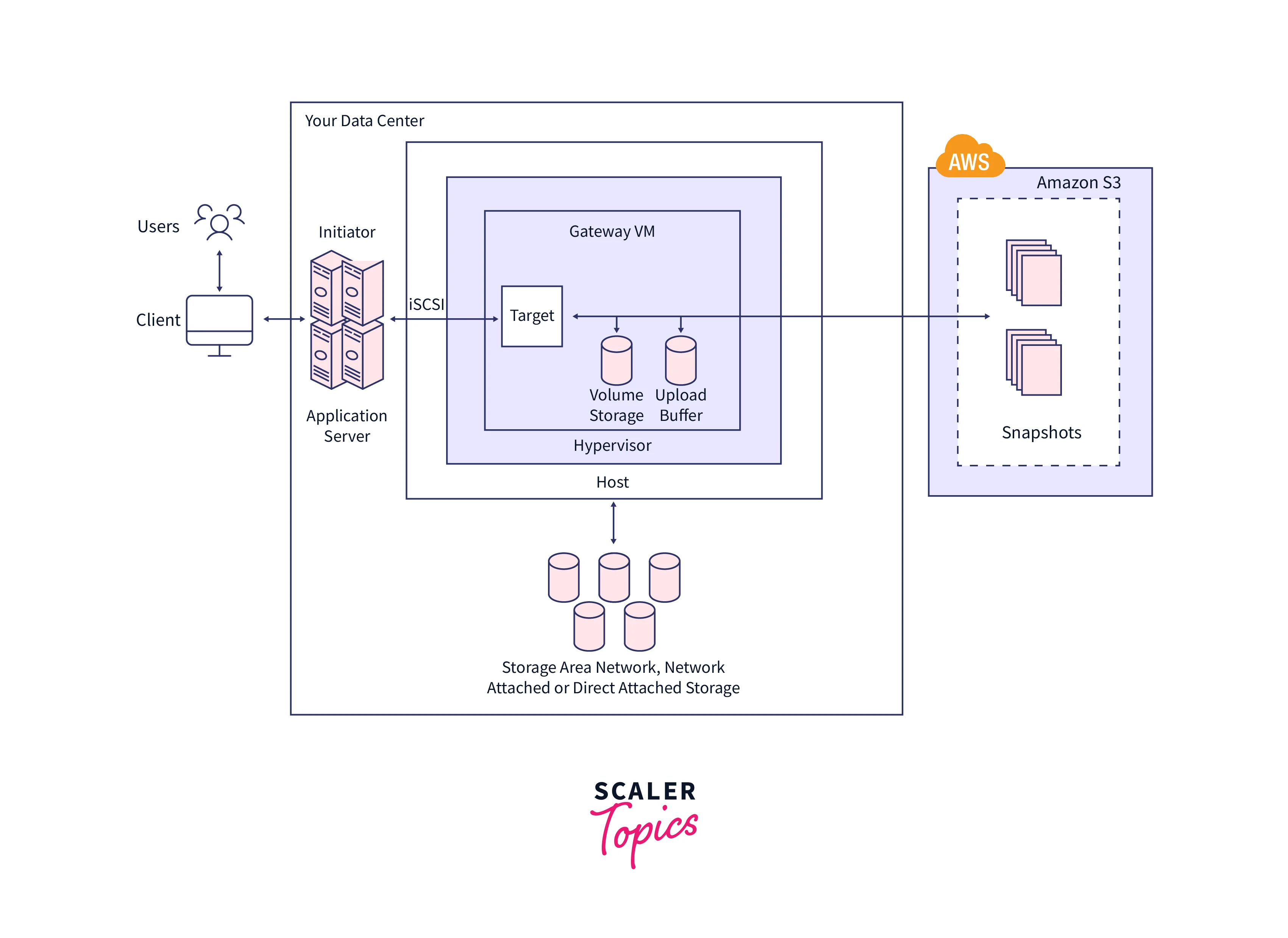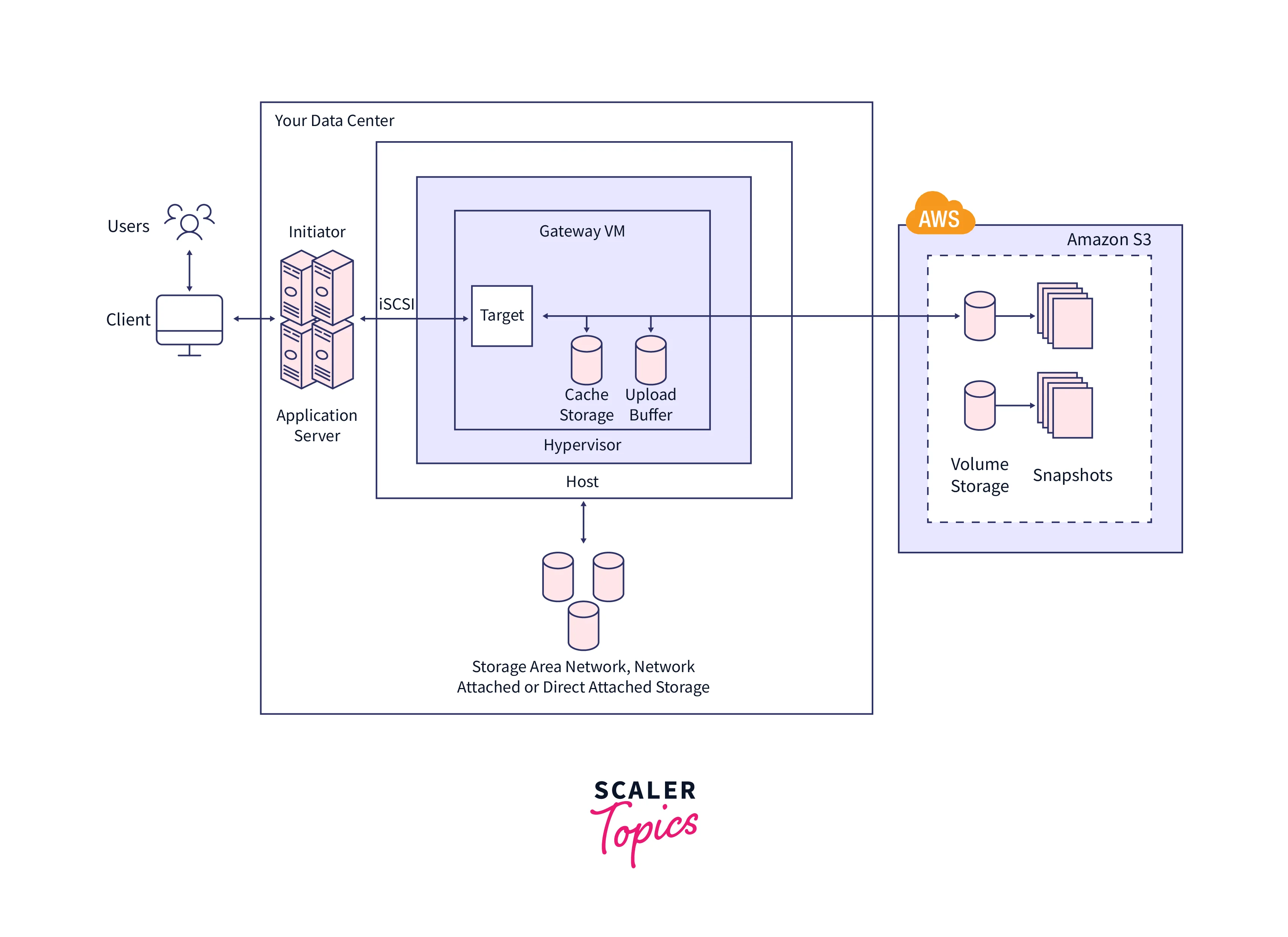A Volume Gateway delivers cloud-backed storage volumes that you may mount as Internet Small Computer System Interface (iSCSI) devices from your on-premises application servers.