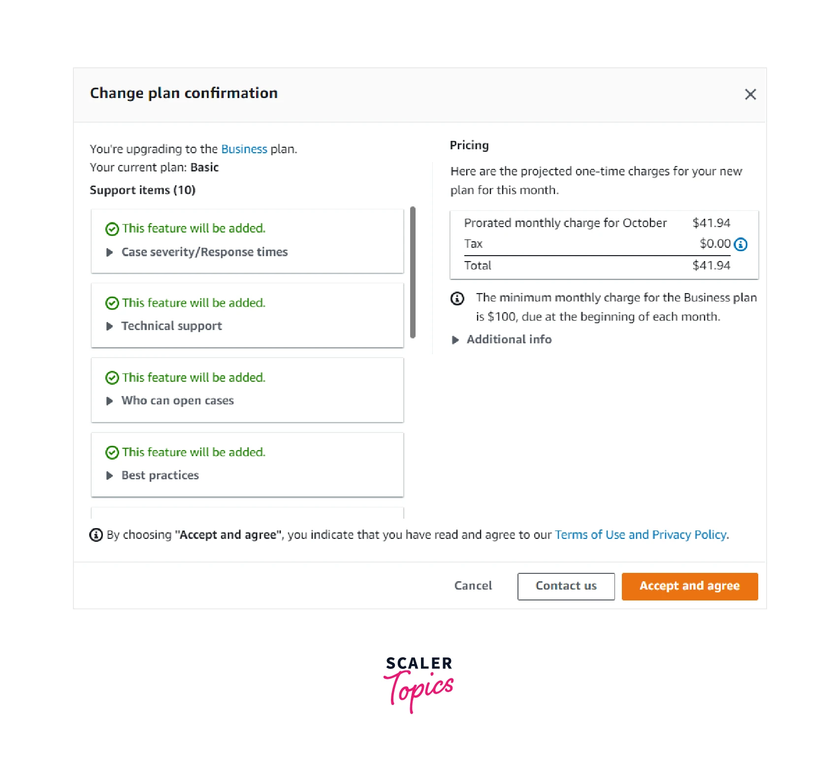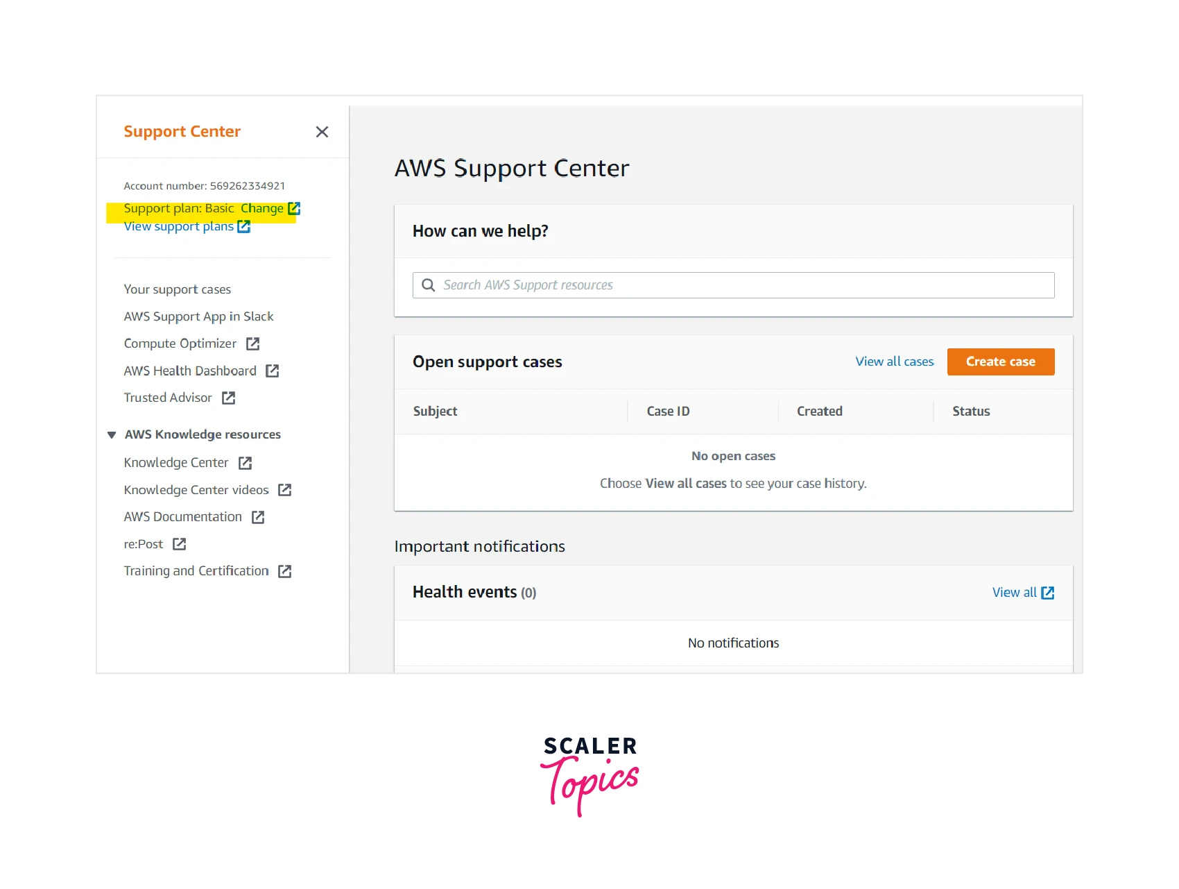 Note: The Basic support plan will be applied to the AWS account upon creation by default.