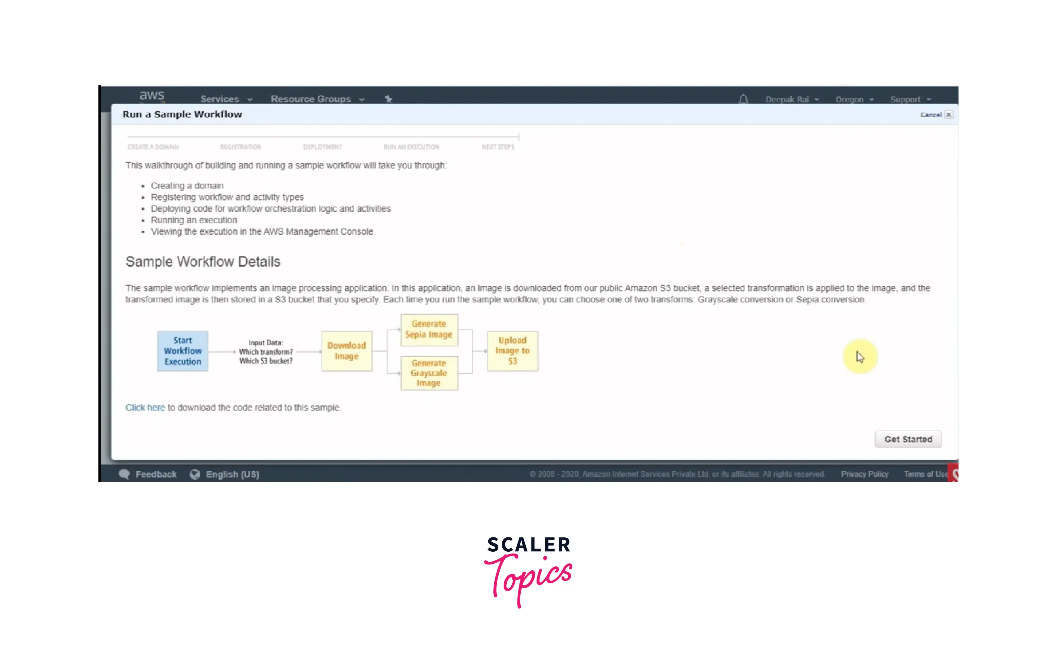- You will be shown five steps: create a domain, registration, deployment, run an execution, and next steps. Click on "Get Started."