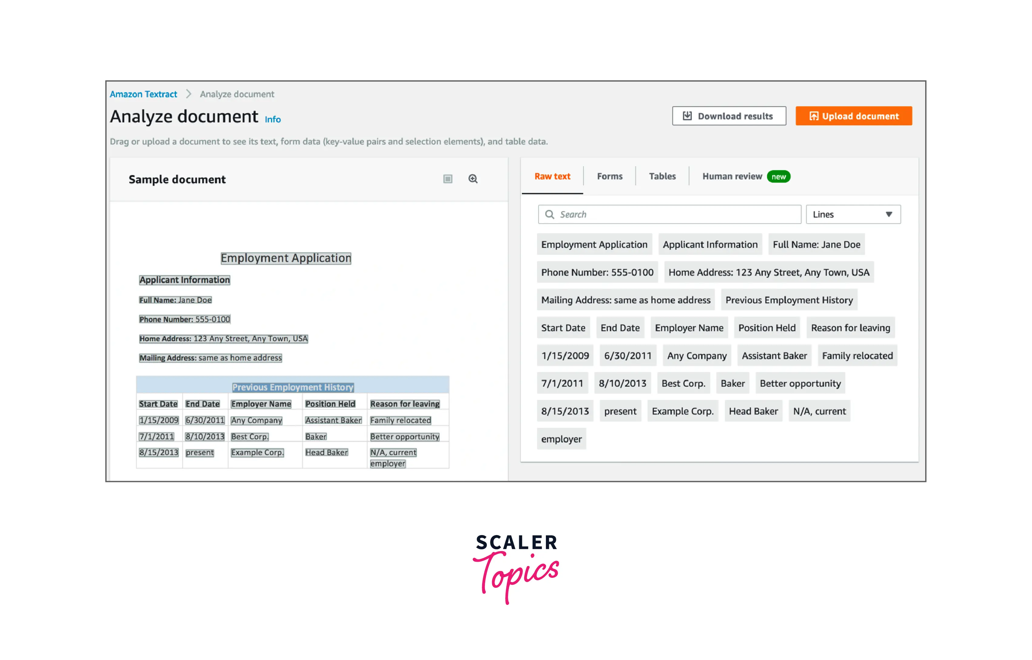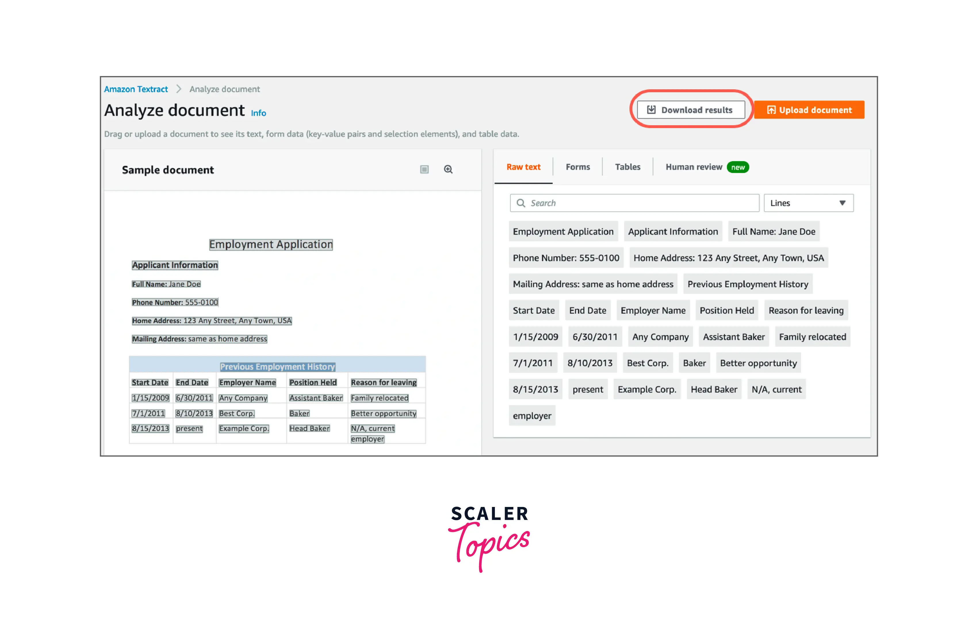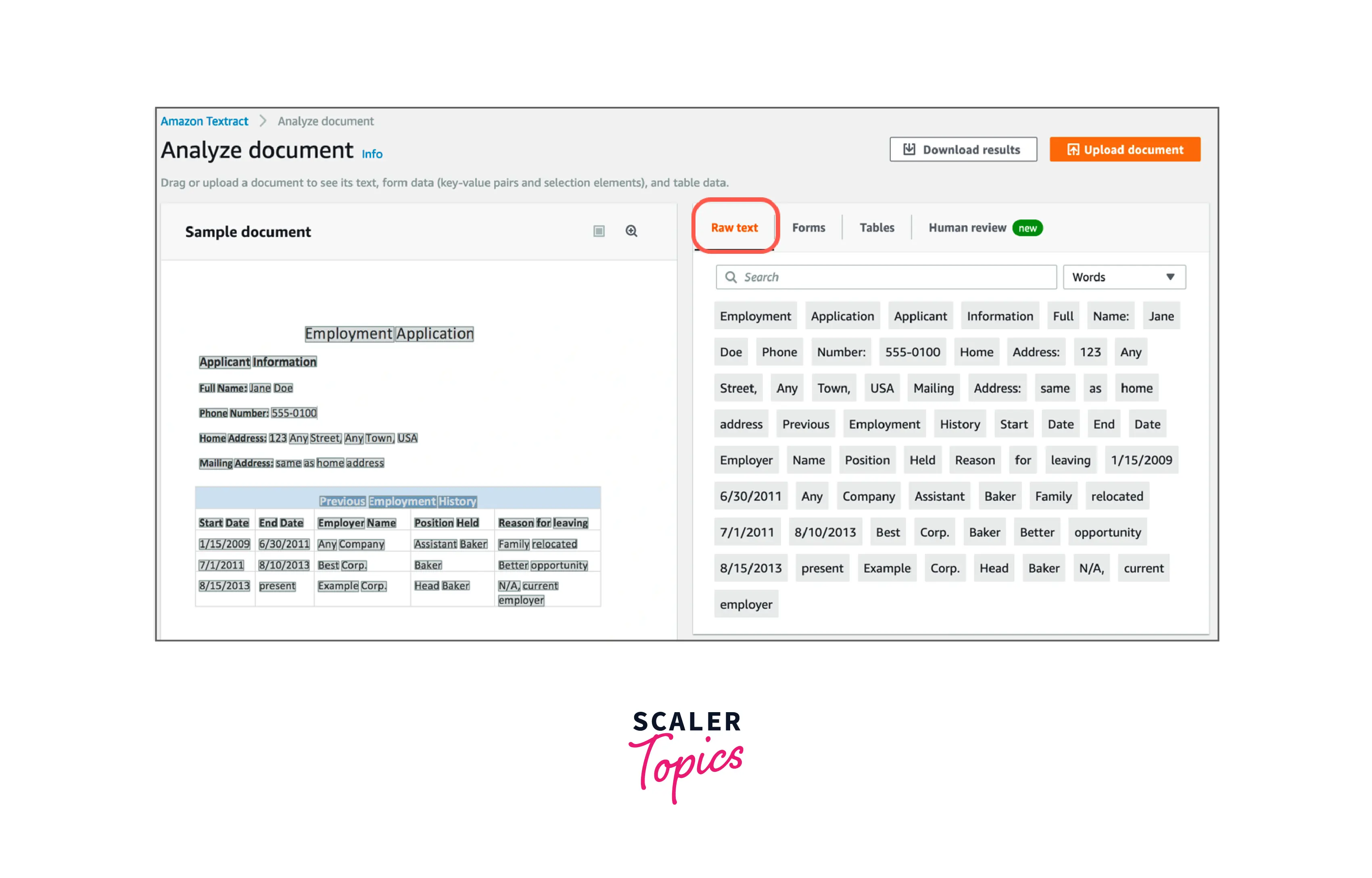 The structure of the data contained in tables is preserved by Amazon Textract during extraction. It is useful for documents that contain a lot of structured data and the data is present in a tabular format. - Confidence scores :