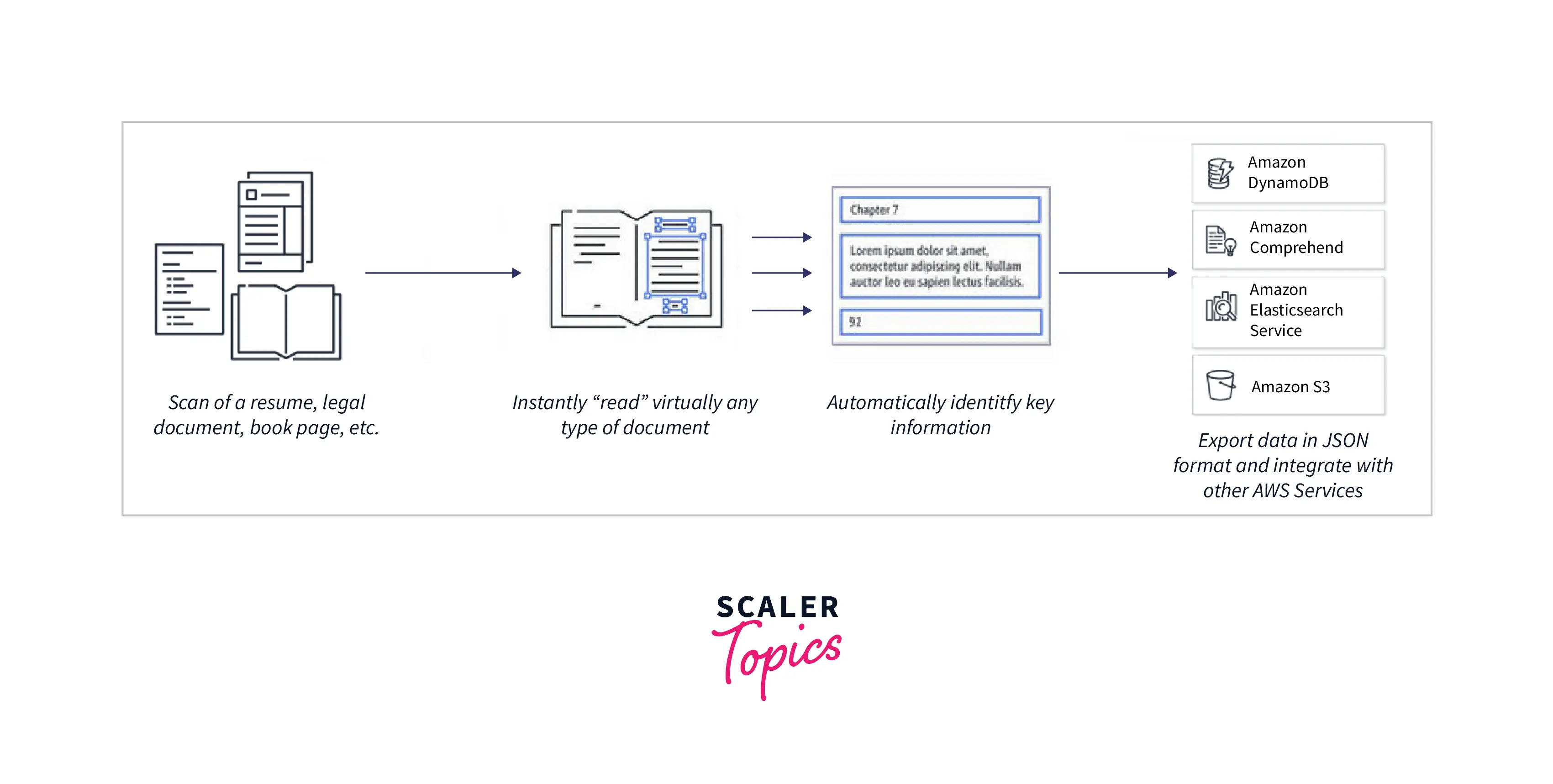 The machine learning-based document analysis service called AWS Textract allows users to automatically detect and extract text from a variety of file formats. From various file formats, Amazon Textract can extract printed data, handwritten data, tables, etc. The AWS console makes it simple to further visualize the extracted text. For the end user's convenience, all the extracted text is also displayed in a rectangular frame over the source data document. AWS Textract can be used with the AWS Management Console, AWS CLI, and Amazon Textract API. AWS Textract is a fully AWS-managed service. At the moment, PNG, JPEG, TIFF, and PDF formats are supported by Amazon Textract.