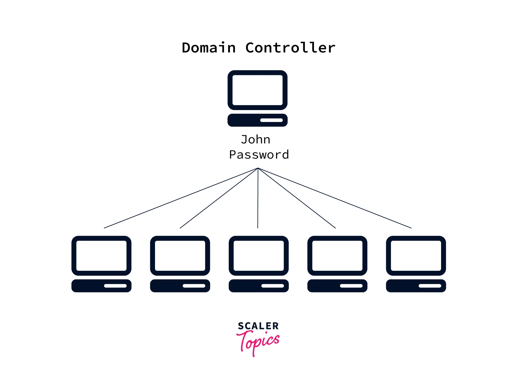 We have a server containing Domain Controller. This server or operating system contains the authorization details for user John. Now using the John credentials, you can log in to any operating system connected to the Domain Controller. So basically, the Active Directory helps us manage authorizations across a group of devices from a single machine directory.