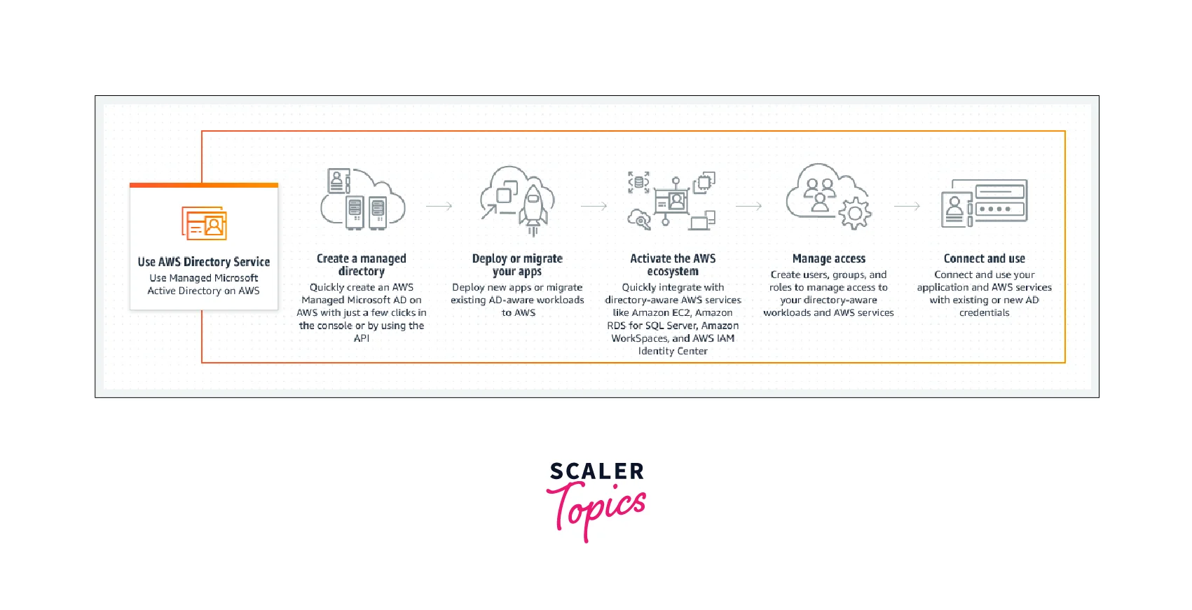- It is a proxy service that helps in connecting AWS applications to your on-premises Microsoft Active Directory.