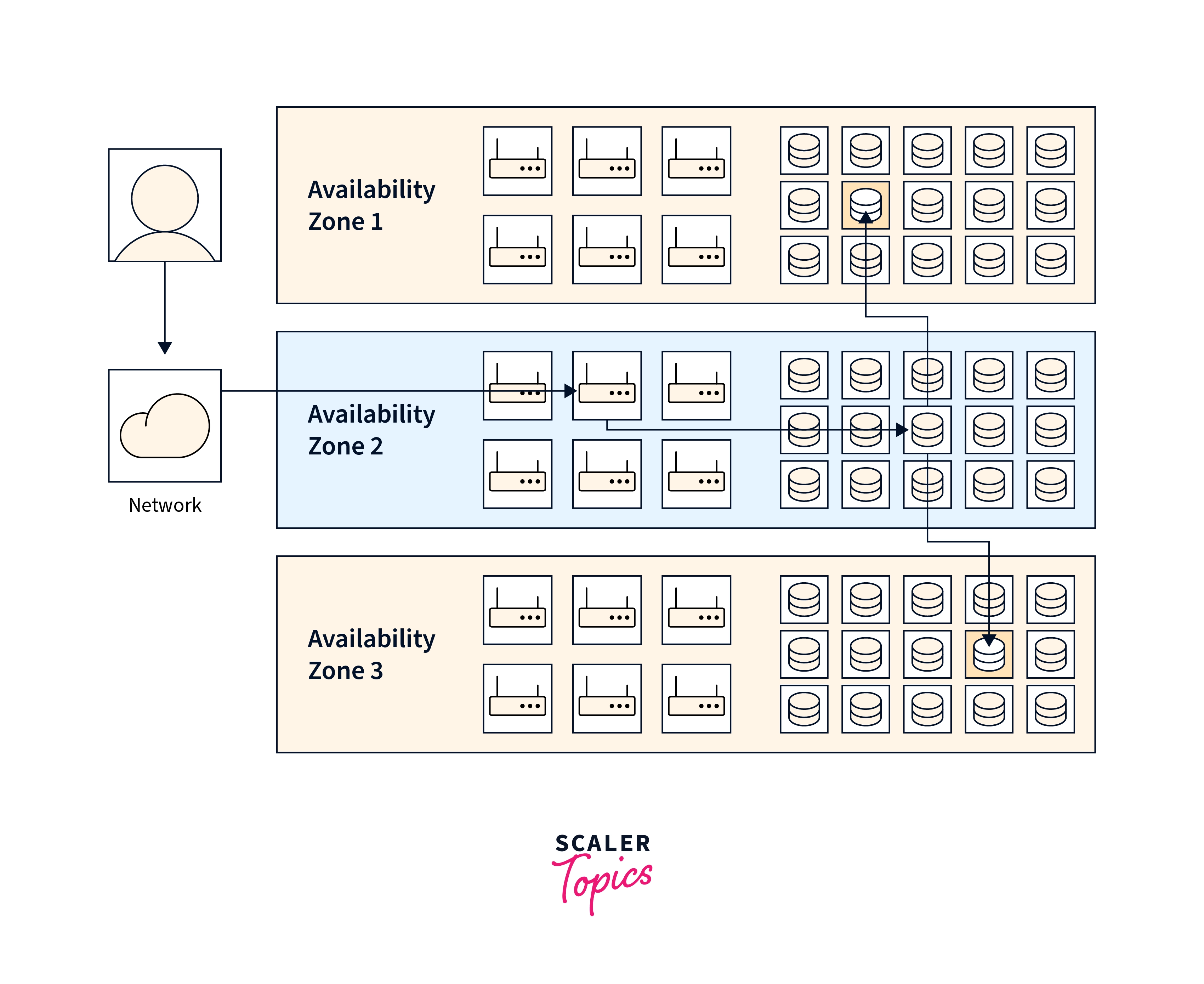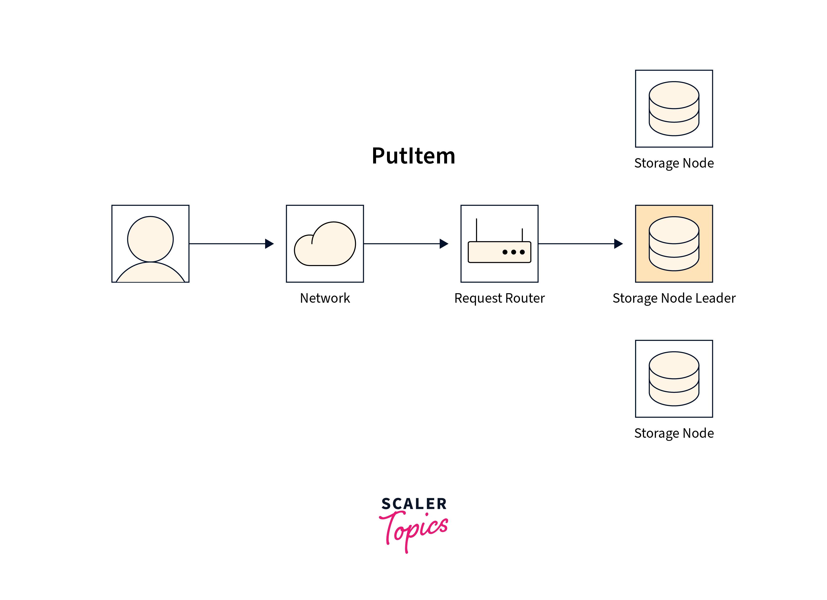- When a customer puts an item into DynamoDB via an API call, the request will pass through the request router in any of the availability zones, and then the request router will store the data in the same availability zone storage node.The storage node will copy the data and send it to the next available node within the same region.