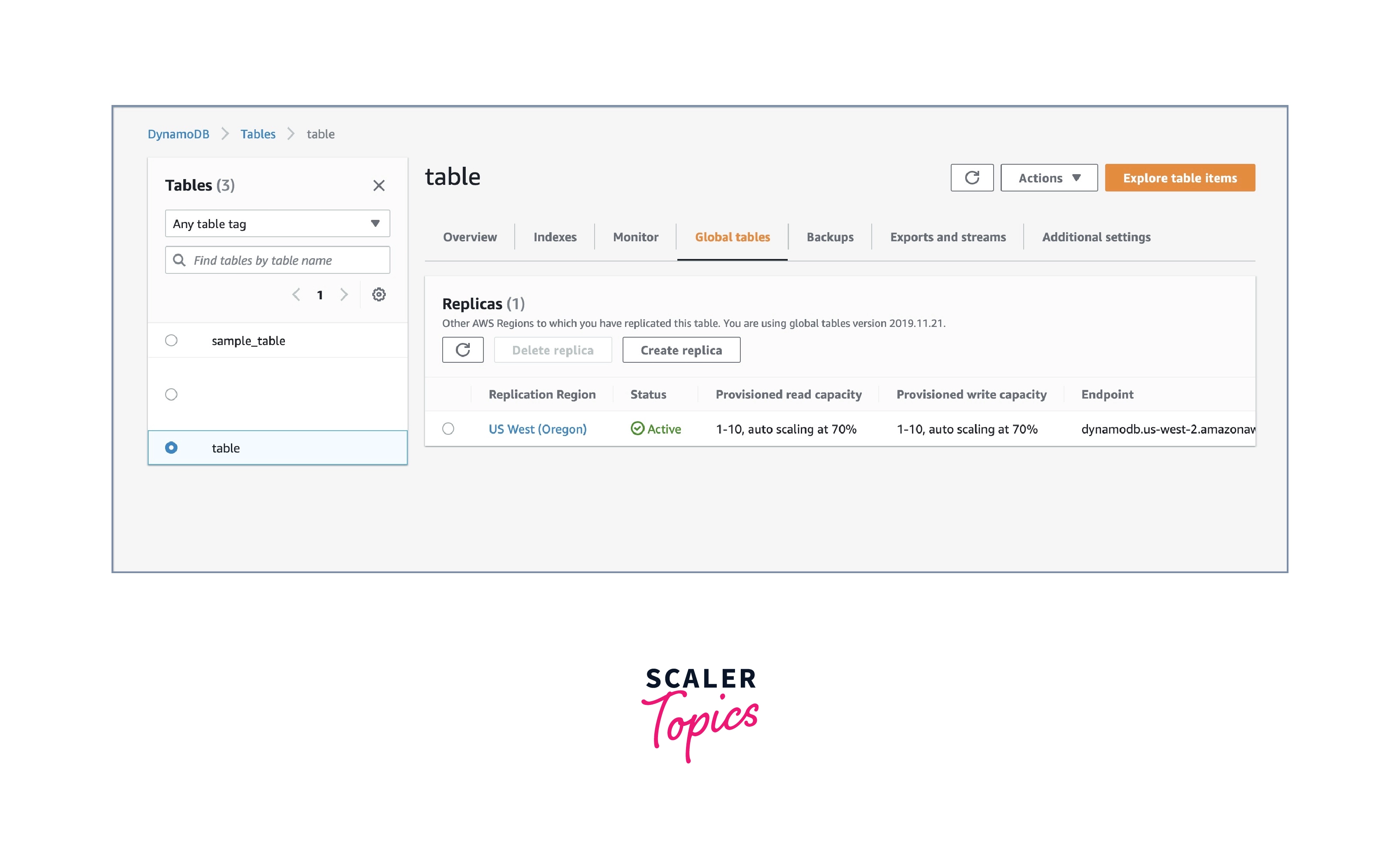 DynamoDB streams are used by Global Tables to transfer changes between replicas. A mechanism for the flow of information about item changes in a DynamoDB table is called DynamoDB Streams. There are several ways to set up Multi-Region DynamoDB Replication, including utilizing Java to generate Global Tables, the AWS Console, and the Amazon Command Line. The Global Tables will be created using the AWS Console in this way. You can review the official documentation here, if you wish to create the Global Tables using Java or the Amazon Command Line.