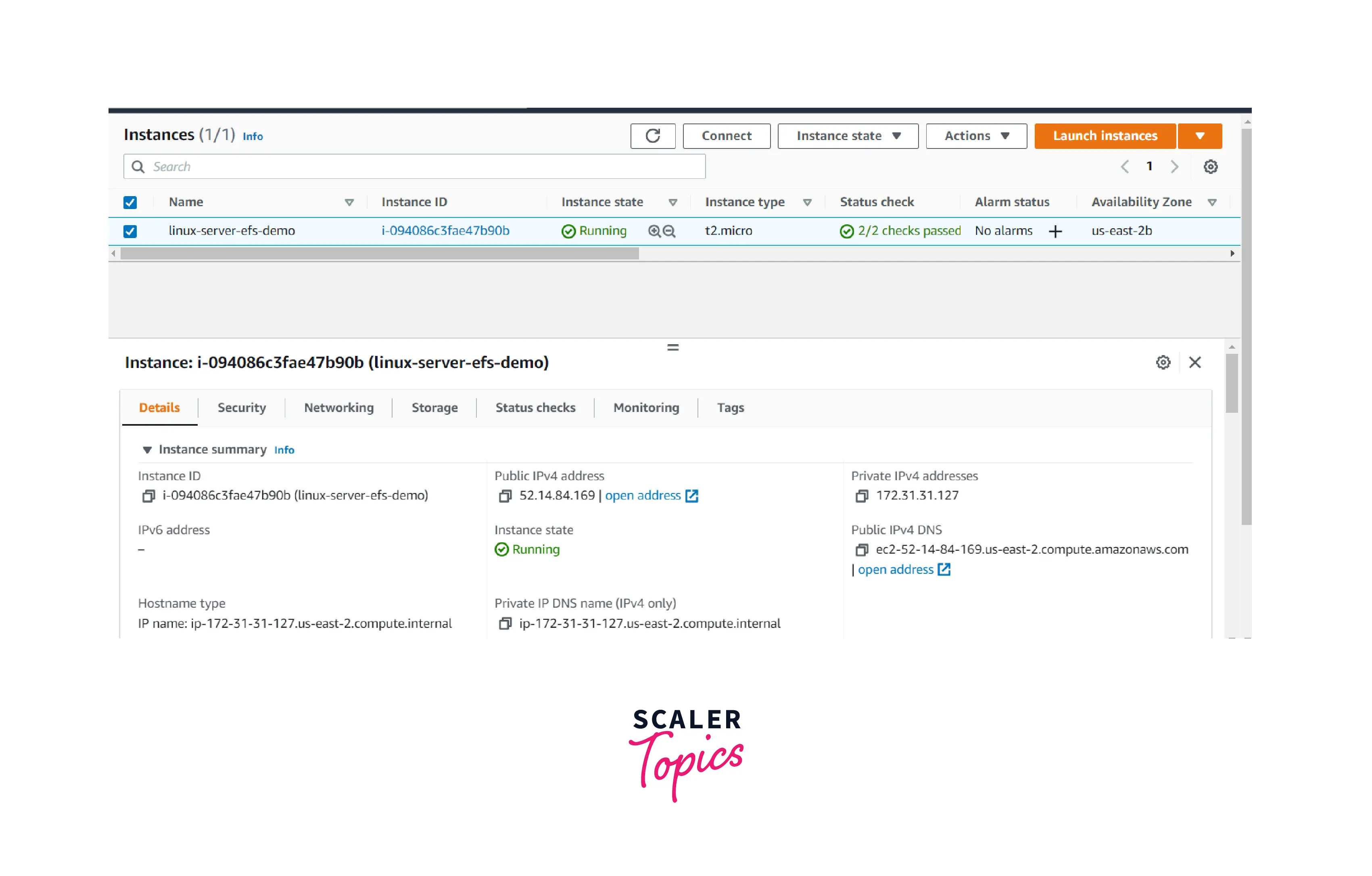 - The EC2 Linux instance is in a running state like below.