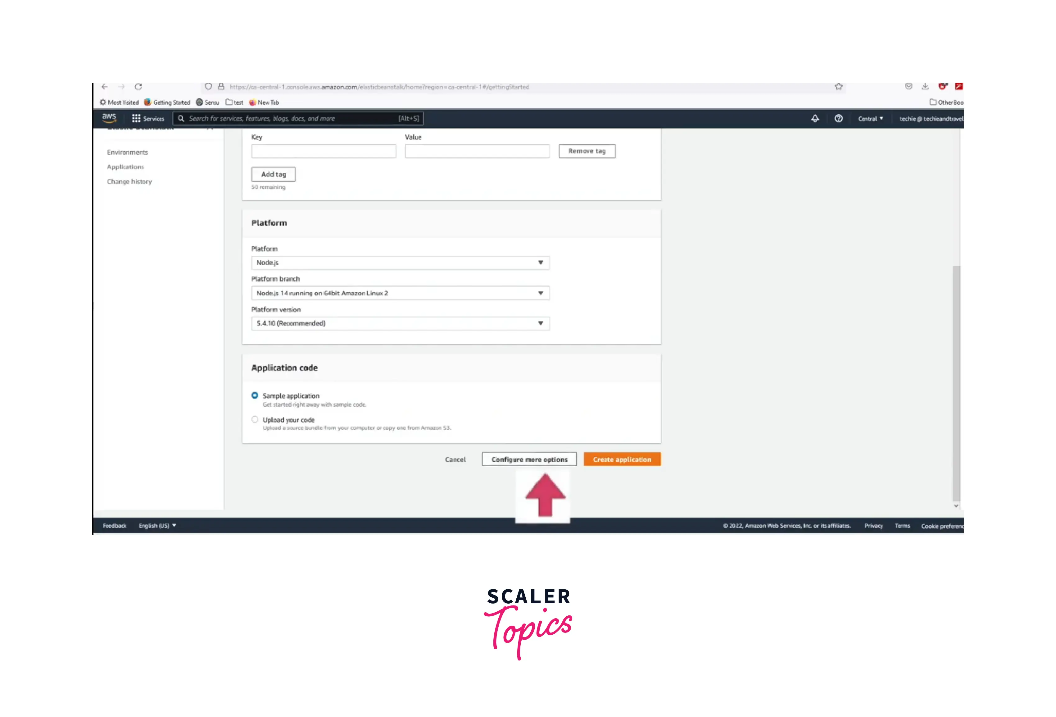 Step 7: After choosing the appropriate configuration details for the application, click on "Create app." Then, Elastic Beanstalk will create an environment for your application.