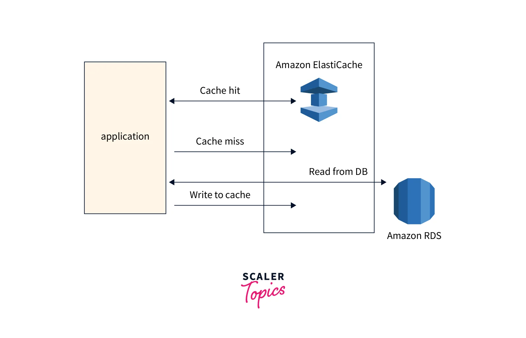 The user first hits the application server, then the Application server tries to fetch the updated data from the Amazon ElastiCache. If the updated data is present in ElastiCache, the application server will fetch the data from there. Otherwise, it will read from the actual database (Amazon RDS) and return to the application server. Now the application server has read the most updated data and it will now write the data to ElastiCache to avoid the hassle of reading that particular data from the Amazon RDS again.