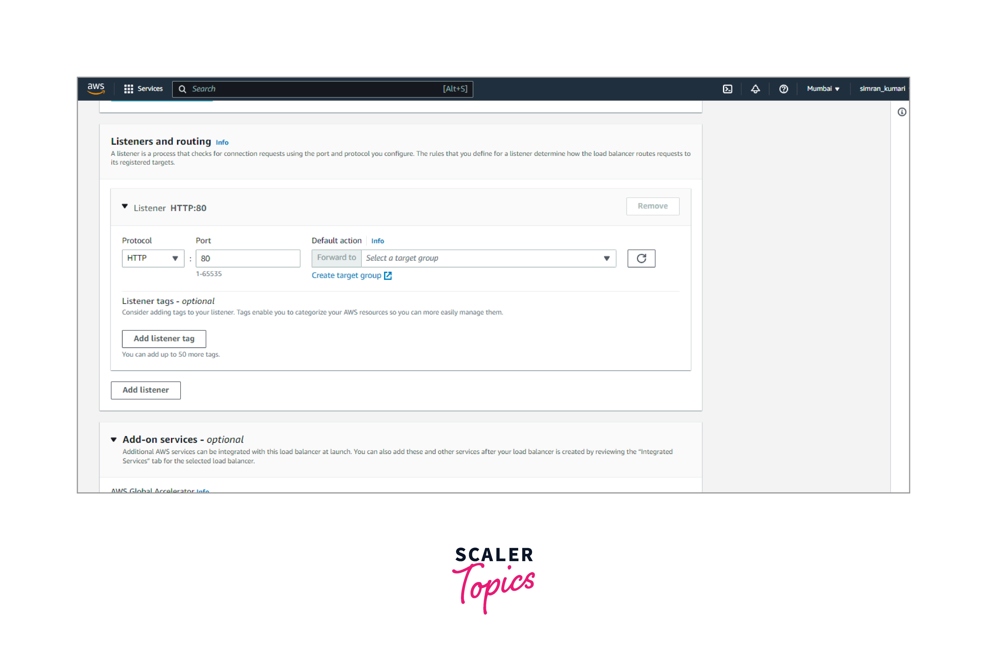 - While configuring the AWS load balancer, we can provide the IP address of the target server, and our application can receive user requests.
