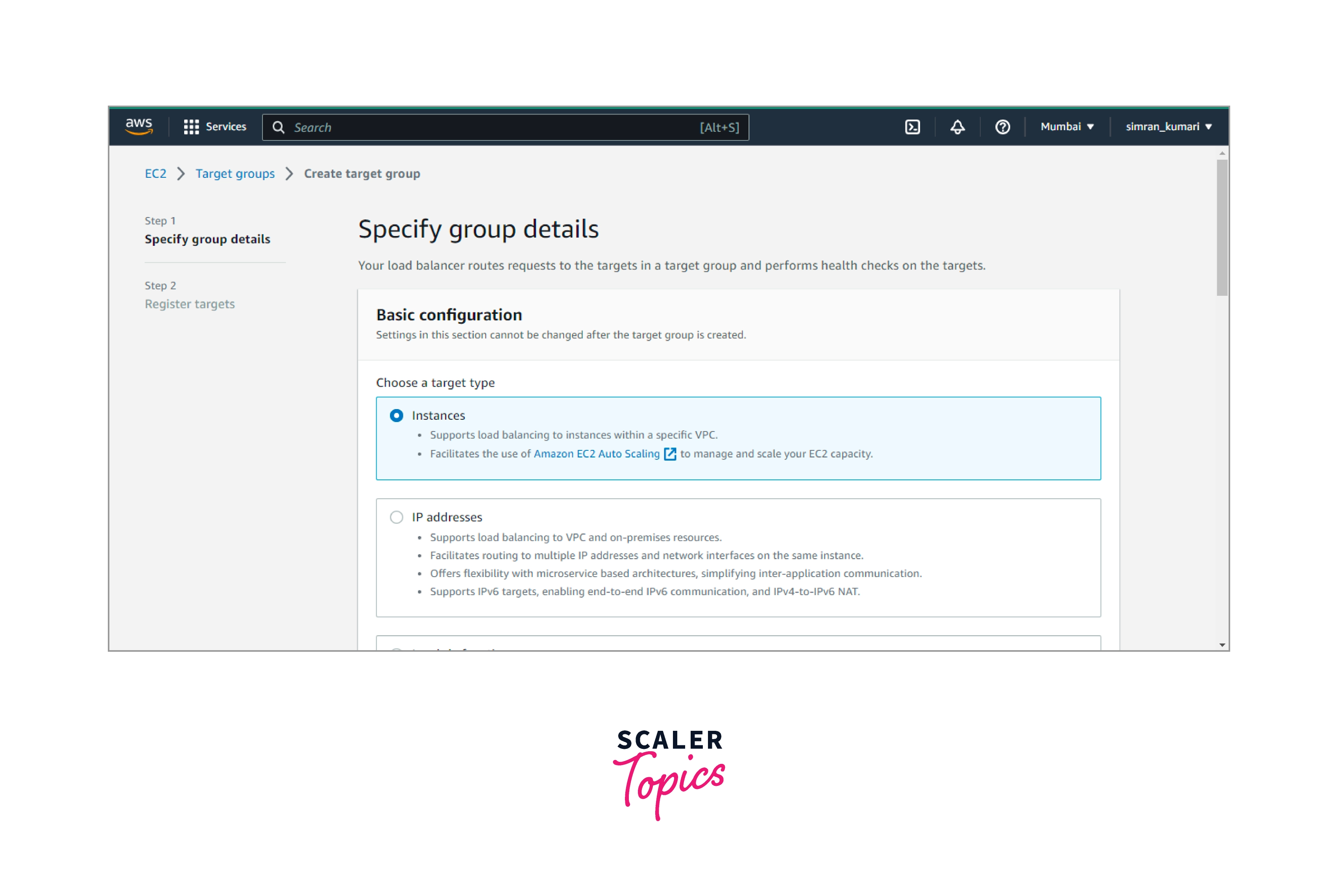 - After that, we can either manually attach EC2 instances to the Target Group and then attach that group with the load balancer, or we can associate the load balancer with an Auto Scaling group.