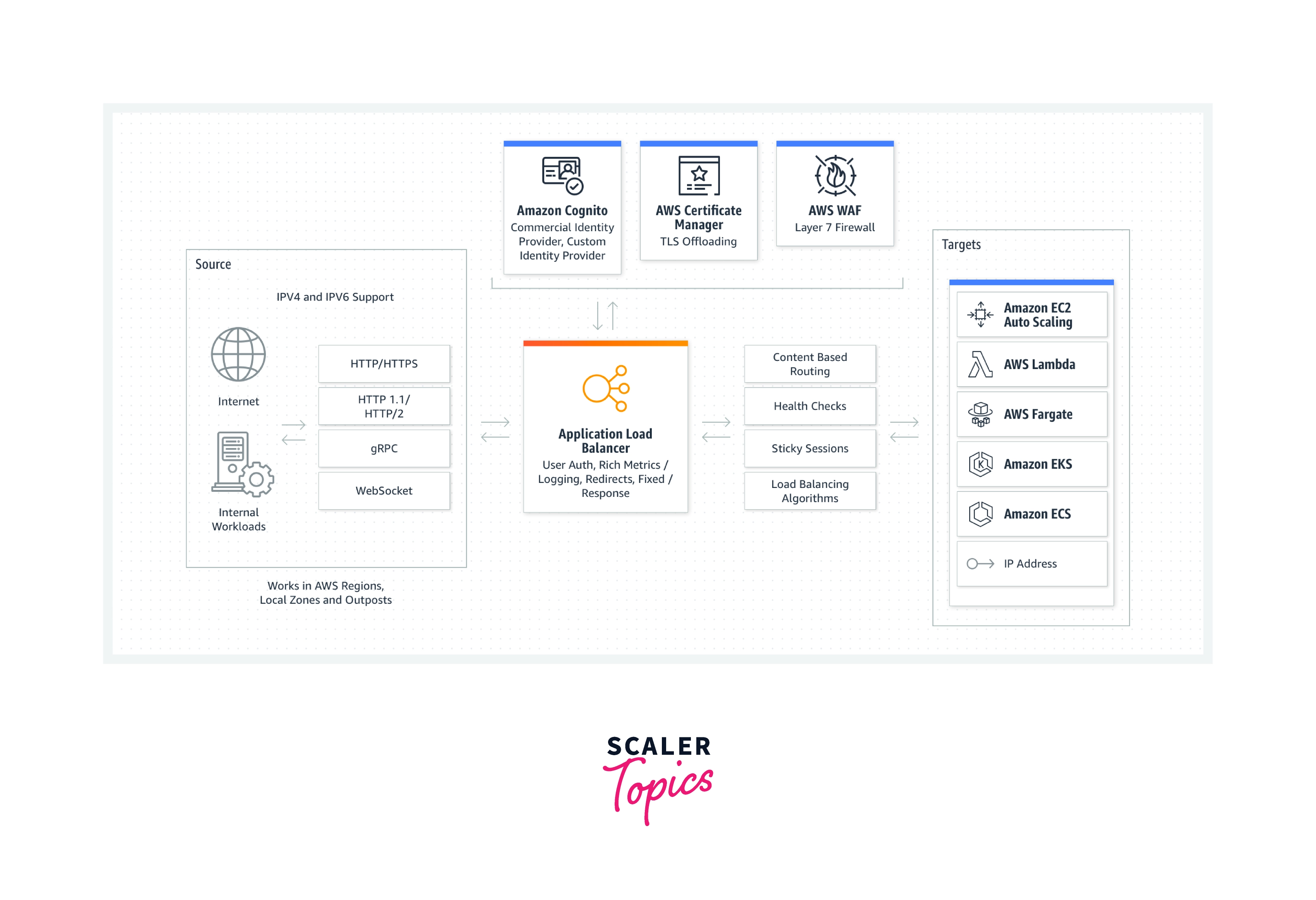 - It works with EC2 Auto Scaling, Amazon EC2, Amazon ECS, AWS Global Accelerator to make it more scaleable.