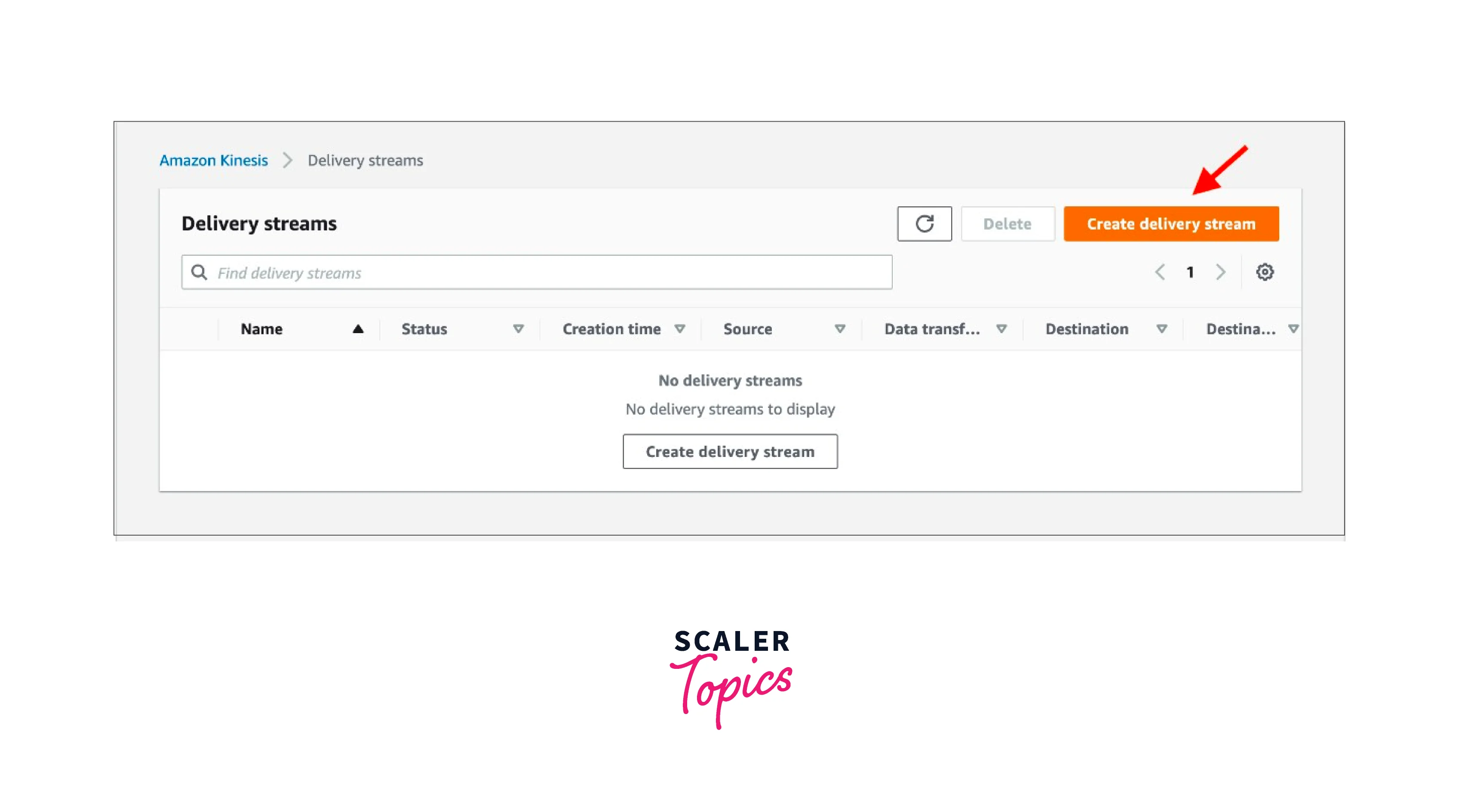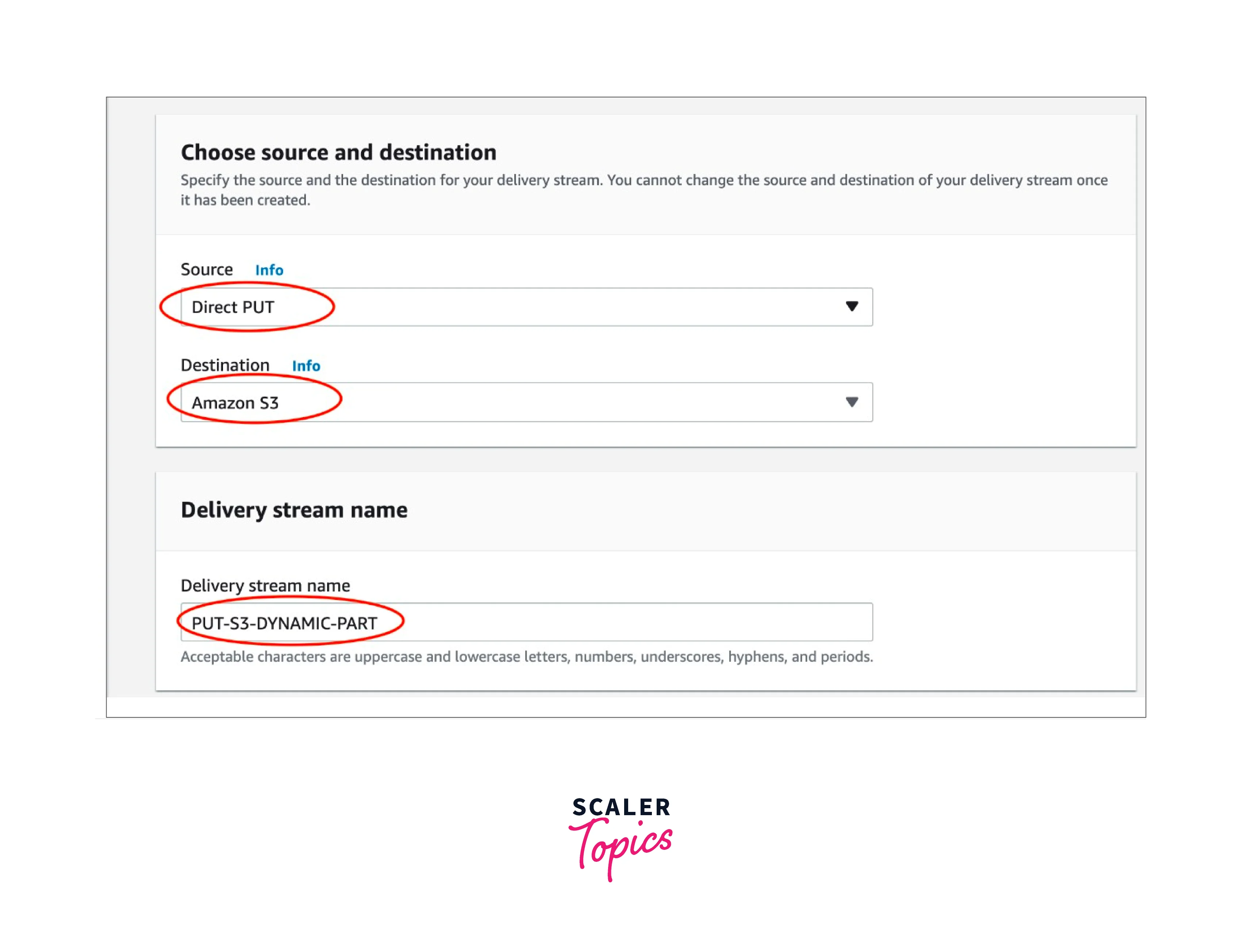 It is your delivery stream's final destination using Kinesis Data Firehose. The Kinesis Data Firehose can transport data records to various destinations, including the Amazon Simple Storage Service (Amazon S3), Amazon Redshift, Amazon OpenSearch Service, and any HTTP endpoint you or one of your third-party service providers manage. - Delivery Stream Name: