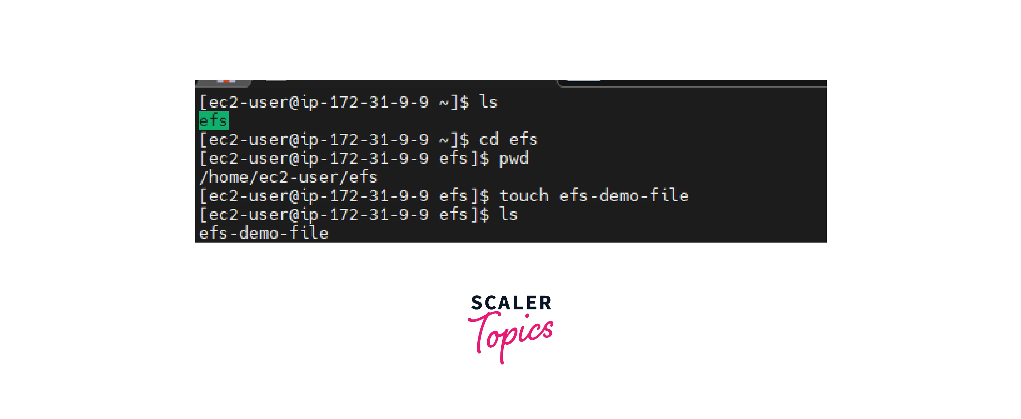Step 3: Create an empty file named efs-demo-file in instance 1 and exit