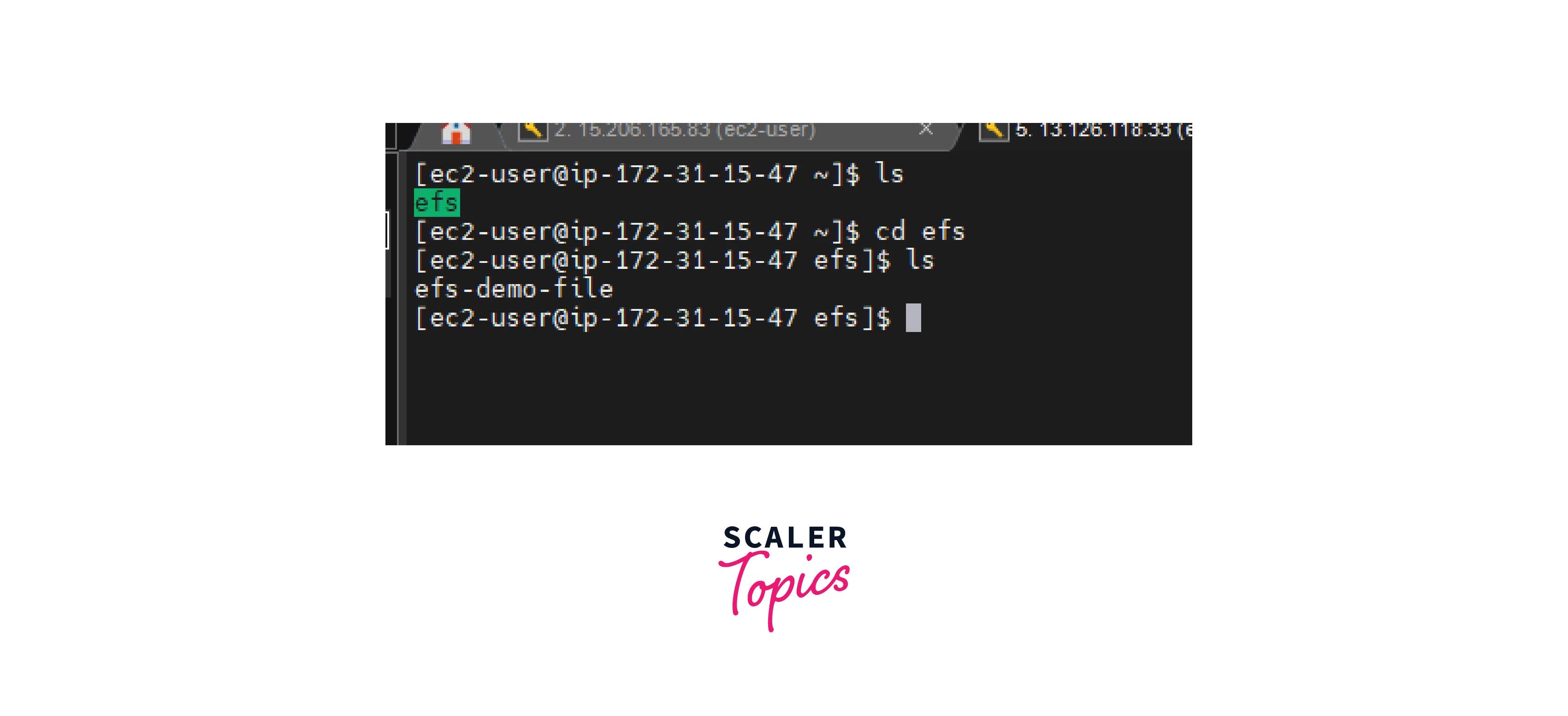 Step 4: Log in to instance 2 and enter the below command to see the file available via EFS.
