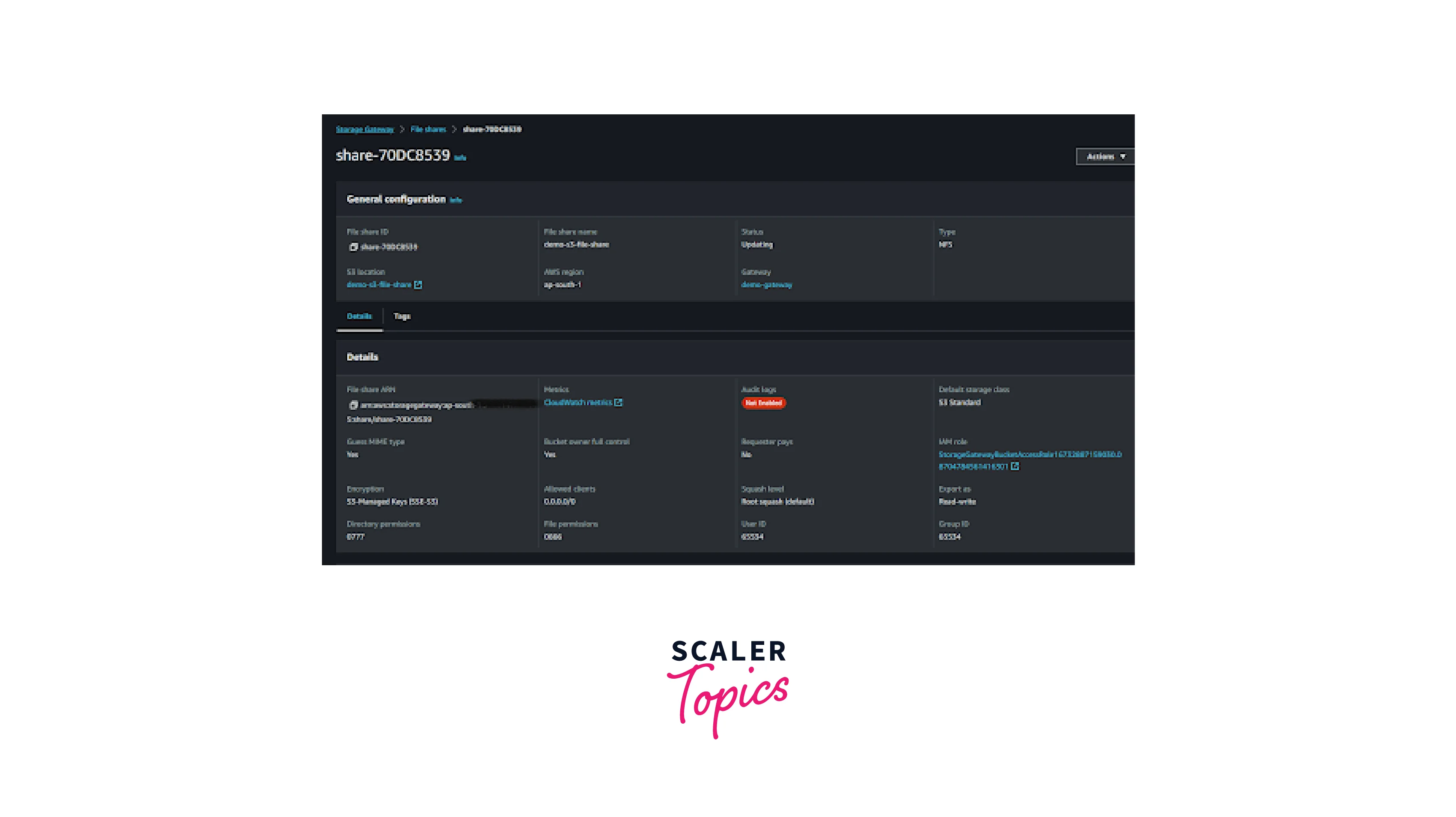 Step 6: Now the NFS in AWS file share is created in the AWS environment using a storage gateway and S3 bucket.
