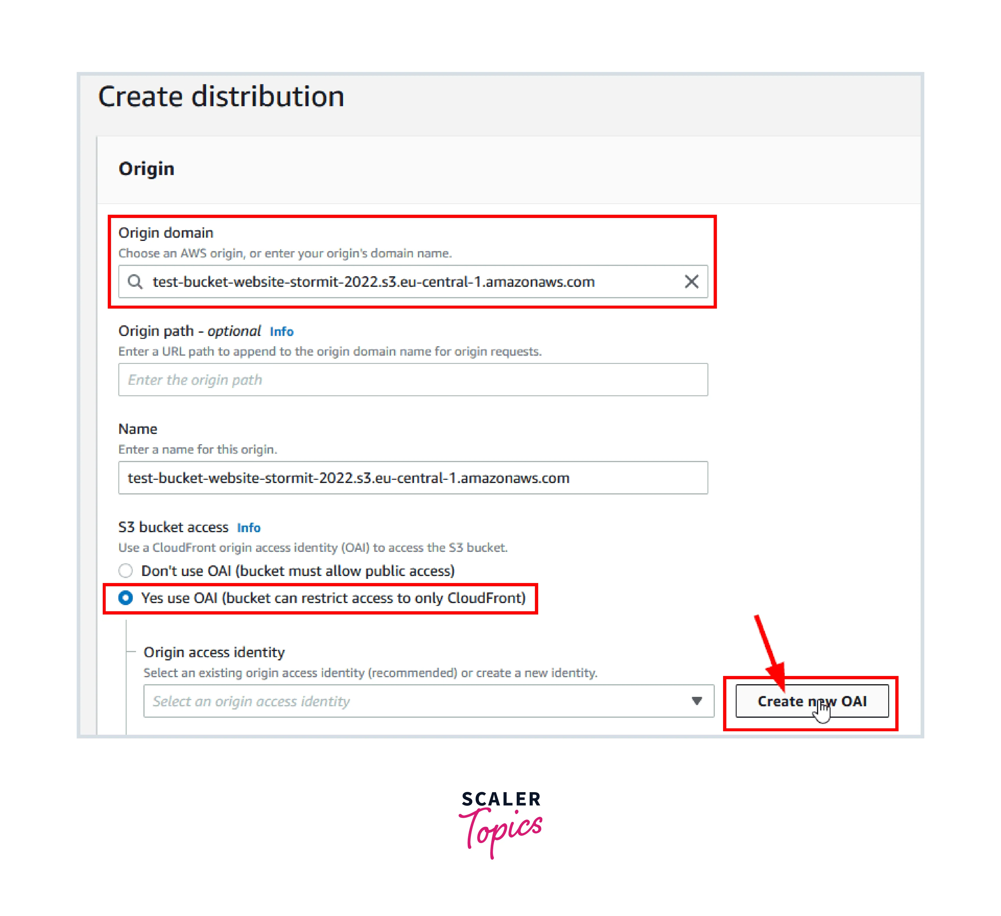 - As stated in the previous section, you can create an OAI using the AWS Management Console or the AWS CLI. The OAI's ID must be noted because it will be required in the following stage.